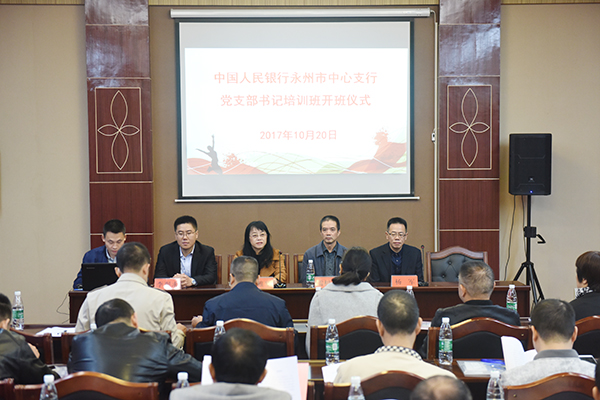 本网讯 (通讯员 李艳)为深入贯彻落实全面从严治党要求,进一步加强基层党组织建设,10月20日,正值党的十九大召开之际,beat365官网为中国人民银行永州市中心支行举办了一期党支部书记专题培训班。该行机关党委书记、党委委员、工会主任雷树清,马克思主义学院院长廖雅琴等出席。