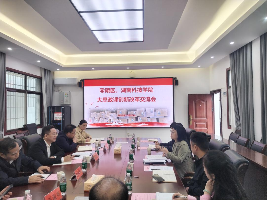 10月20日,beat365中文官方网站、零陵区“大思政课”创新改革交流会在我院鹤鸣楼405会议室召开。零陵区区委办常务副主任蒋国荣一行,beat365中文官方网站马克思主义学院院长廖雅琴、党总支书记高丹、副院长唐立及学院教师代表参会,双方围绕协同推进“大思政课”创新改革进行交流。