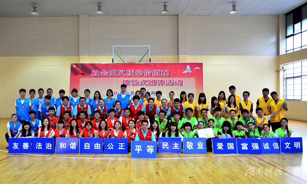 来自全校各个学院的60名学生党员围绕社会主义核心价值观这一主题进行了为期一天的体验式活动。活动开始前,60名学生党员通过抽签方式随机分为“火蓝队”、“朝阳队”、“绿箭队”、“热情青春队”四个队伍。 按照“异口同声、核心价值赞赞赞、核心价值观认同、核心价值谈谈谈、合作拼图、核心价值做做做”六个环节进行。