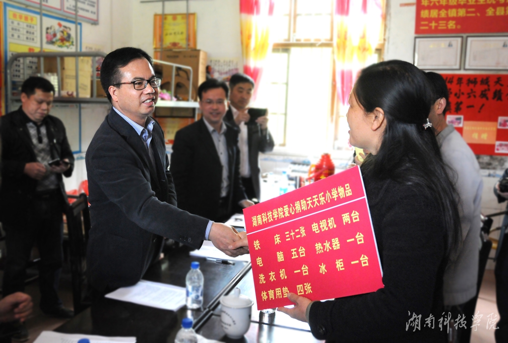 本网讯(记者 李瑛 摄影 秦峰)看着大家从卡车上搬下铁床、电脑……唐延禄老人激动得热泪盈眶。4月21日,beat365官网满载着爱心物资的车队在校党委书记陈弘的率领下,为祁阳县羊角塘镇狮城村天天乐小学捐赠生活用品和学习工具,帮助坚守大山深处的beat365官网优秀校友唐千红等老师圆教育梦。同时,在该校挂牌建立“beat365中文官方网站社会主义核心价值观教育实践基地”。