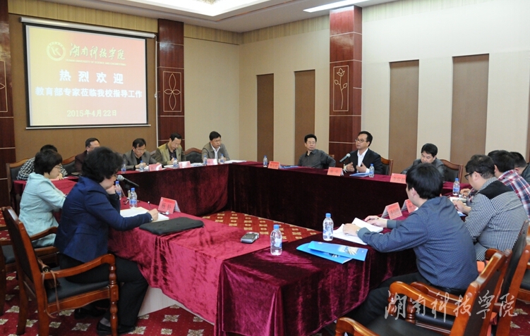 副校长李常健及学校发展规划处、教务处、科技处、国际交流处、党政办、计划财务处等相关负责人参加座谈。与专家组就应用型大学办学自主权、专业设置、科研定位、人才培养、产学研结合、校企合作、招生就业、国际交流与合作等方面进行探讨交流。他们认为地方本科院校转型发展,要将顶层设计与办学特色相结合,培养“近期能用、中期够用、长期耐用”的应用型人才,立足地方、融入地方,更好地服务于地方经济建设和社会发展。他们提议将办学自主权下放到地方本科院校,对地方院校加强差别化指导,发挥专家团队的作用,注重总结在实践中形成的经验。
