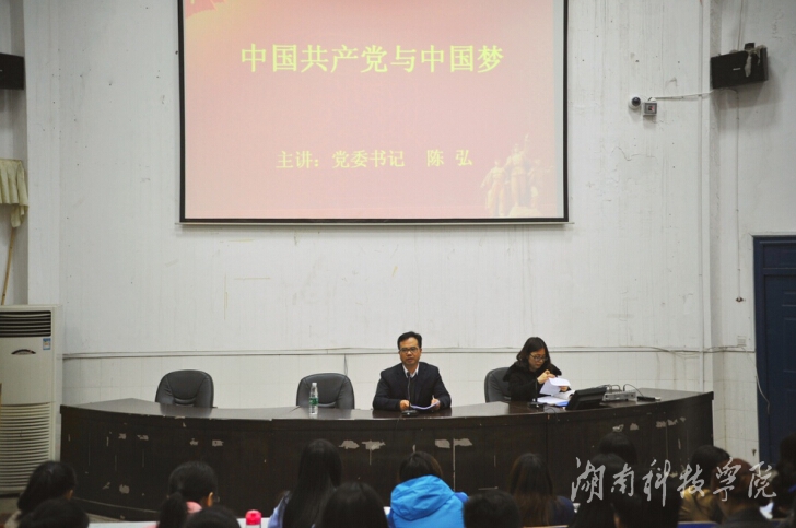 陈弘以《相信未来》和《我的自白书》两首诗歌引出主题,深切地阐述“中国梦”的具体含义。陈弘指出,“中国梦”深刻道出中国近代以来历史发展的主题主线,深情描绘了近代以来中华民族生生不息,不断求索、不懈奋斗的历史。他从中国共产党的性质、革命历程、共产党员党性修养等方面,结合当今社会发展形势与当代大学生的历史使命,对青年学子的思维方式、价值体系、人生道路作正确引导。陈弘强调,要始终坚持“三个自信”,即理论自信、道路自信、制度自信,不断增强对“四个全面”的理解和把握,广泛凝聚谱写“中国梦”科院篇章的强大力量。