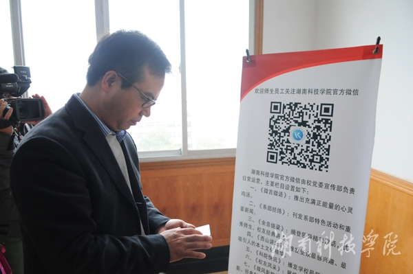 唐艳明在上线仪式上致辞。唐艳明希望官方微信坚持“观念引导与行动实施并重,服务学校与服务学生并重,立足校园与放眼社会并重” 的原则,积极打造学校服务师生校友、展示发展成果、树立良好形象的新媒体平台,把官方微信建设成宣传学校的新窗口,维系师生情谊的新纽带。