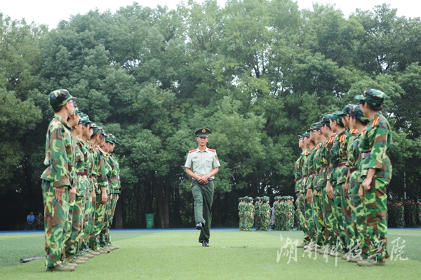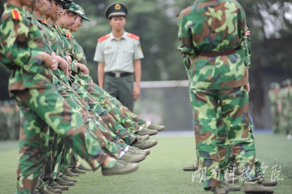 随着2014级新生开学典礼暨军训开幕仪式的举行,学子们的军训生活也拉开了序幕。他们身着整齐的军装,从站军姿、稍息、立正、跨立等基本项目开始学起,从摆臂到踢腿,从握拳到绷脚,每一个动作都力求标准规范,认真走好大学第一步。(摄影 何帅文)