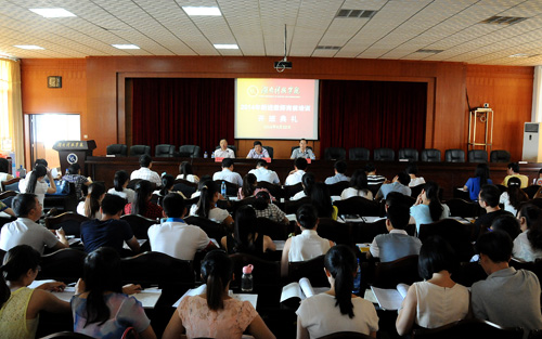 本网讯(通讯员 杨攀)8月22日上午beat365官网2014年新进教师岗前培训开班典礼在学校综合信息楼八楼会议室举行。校党委副书记唐艳明、人事处处长石循忠、任课教师代表唐如前等教授出席开班典礼。