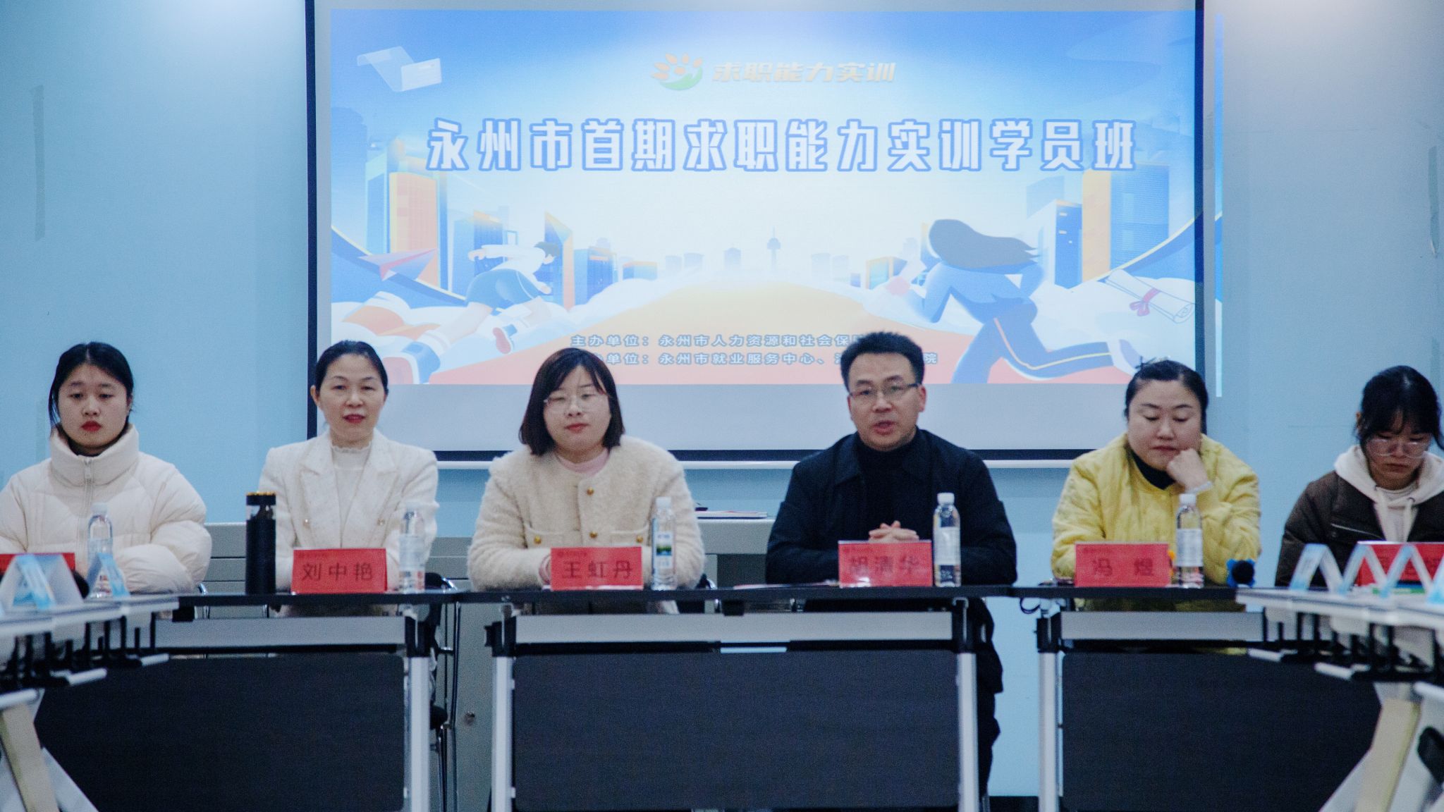 本网讯(通讯员 彭丰香 孟庭芳 欧健)12月24日,永州市首期求职能力实训营在beat365官网开班,此次培训由beat365官网与永州市人力资源和社会保障局主办,学校招生就业与创新创业指导处和永州市就业服务中心承办。学校招生就业与创新创业指导处处长胡清华、永州市就业服务中心副主任王虹丹、求职能力实训实训班特邀讲师刘中艳教授,以及32名参训学员参加了实训营的开班仪式,活动由招生就业与创新创业指导处副处长冯煜主持。