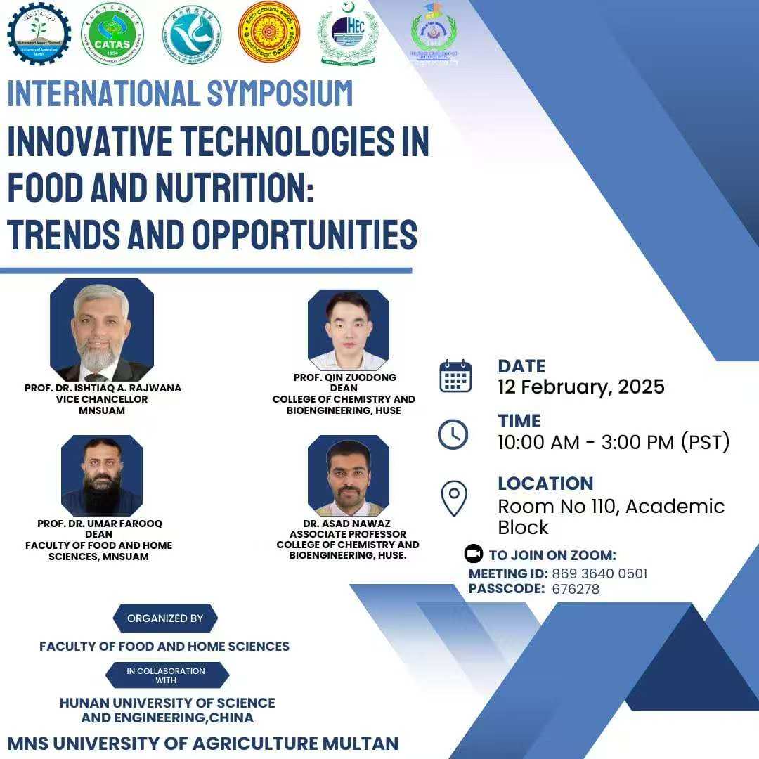 本网讯(通讯员 汪美凤)2月12日,由巴基斯坦Muhammad Nawaz Shareef University of Agriculture联合beat365官网组织发起的“Innovative Technologies in Food and Nutrition: Trends and opportunities”(食品与营养创新技术:趋势与机遇)国际研讨会在巴基斯坦木尔坦以线上线下相结合的方式成功召开。来自巴基斯坦、中国、斯里兰卡等国家和地区的百余名专家学者出席了本次研讨会,共同探索食品营养的最新技术与未来发展趋势。