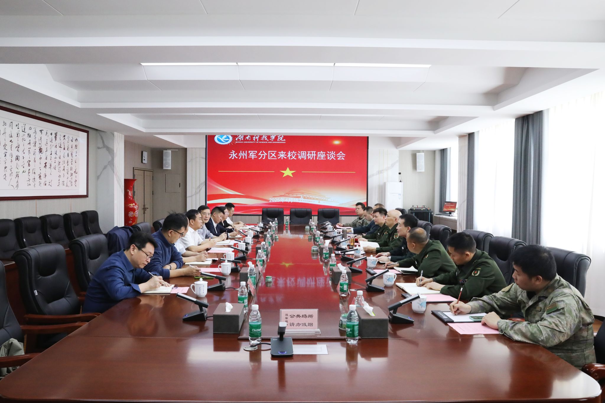 黄创霞代表学校对黎强一行来校调研指导表示热烈欢迎,对永州军分区在武装工作方面给予的指导帮助表示衷心感谢,并介绍了学校的发展历程、办学理念、人才培养、学科建设、武装工作等情况。