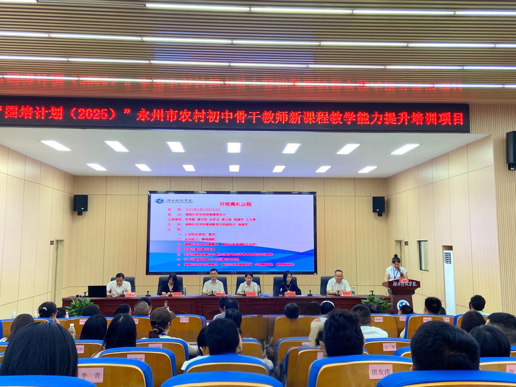 本网讯(通讯员 曹湖云 谢芷仪)5月23日下午,“国培计划(2025)”永州市农村初中数学和物理骨干教师新课程教学能力提升培训项目在beat365官网开班。永州市教师发展中心主任唐作明、副主任眭梦佳等领导以及来自永州市各县区的初中数学、物理学科共140名骨干教师参加开班典礼。beat365官网党委委员、副校长李常健出席开班典礼并致辞。