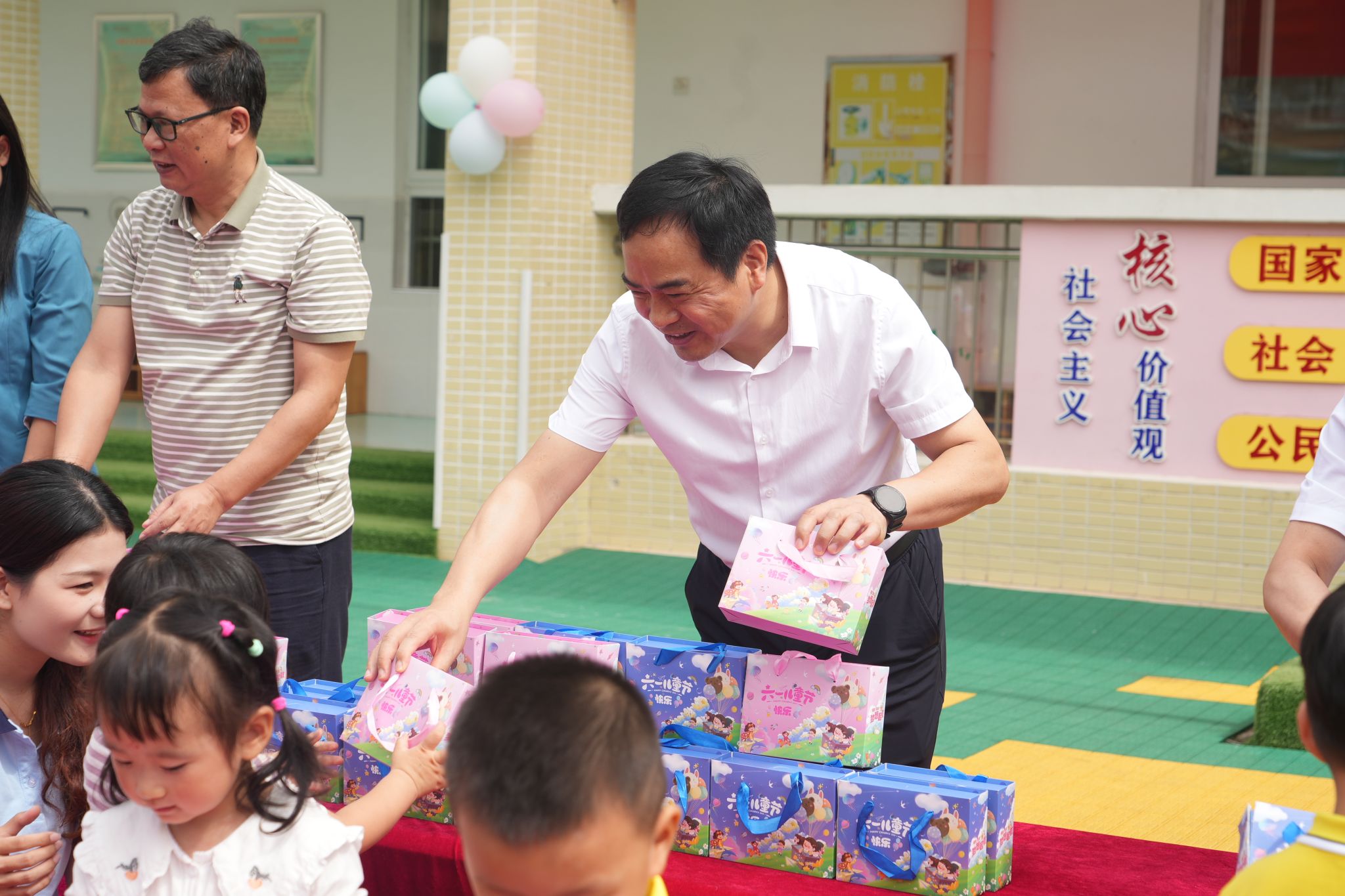 “小朋友们,节日快乐!你们喜欢绘画吗?”活动中,黄创霞、李常健等校领导亲切地走到孩子们中间,俯身交流,将精心准备的礼品送到一双双小手中。礼盒里装满了充满童趣的物件:印有卡通图案的便利贴、色彩缤纷的涂鸦彩笔……黄创霞表示,幼儿园是孩子们梦想启航的地方,学校将一如既往地全力支持幼儿园发展,为孩子们打造更安全、更快乐地成长环境,用心护航每一株“小苗”茁壮成长。