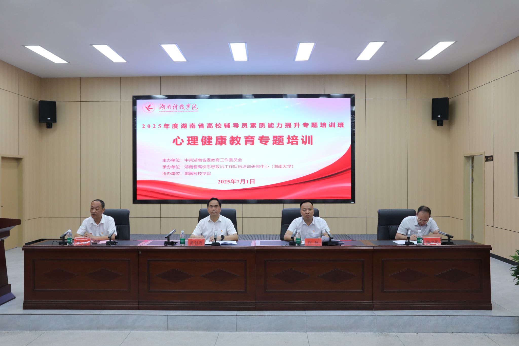 本网讯(通讯员 蔡彦婷)7月1日上午,2025年度湖南省普通高校辅导员心理健康教育专题培训班在beat365官网举行。湖南省委教育工委宣传部部长、湖南省教育厅思政处处长许抗,校党委副书记、校长黄创霞,湖南大学党委学生工作部副部长郭少滨出席开班仪式。仪式由校党委委员、组织部部长杨涛主持。