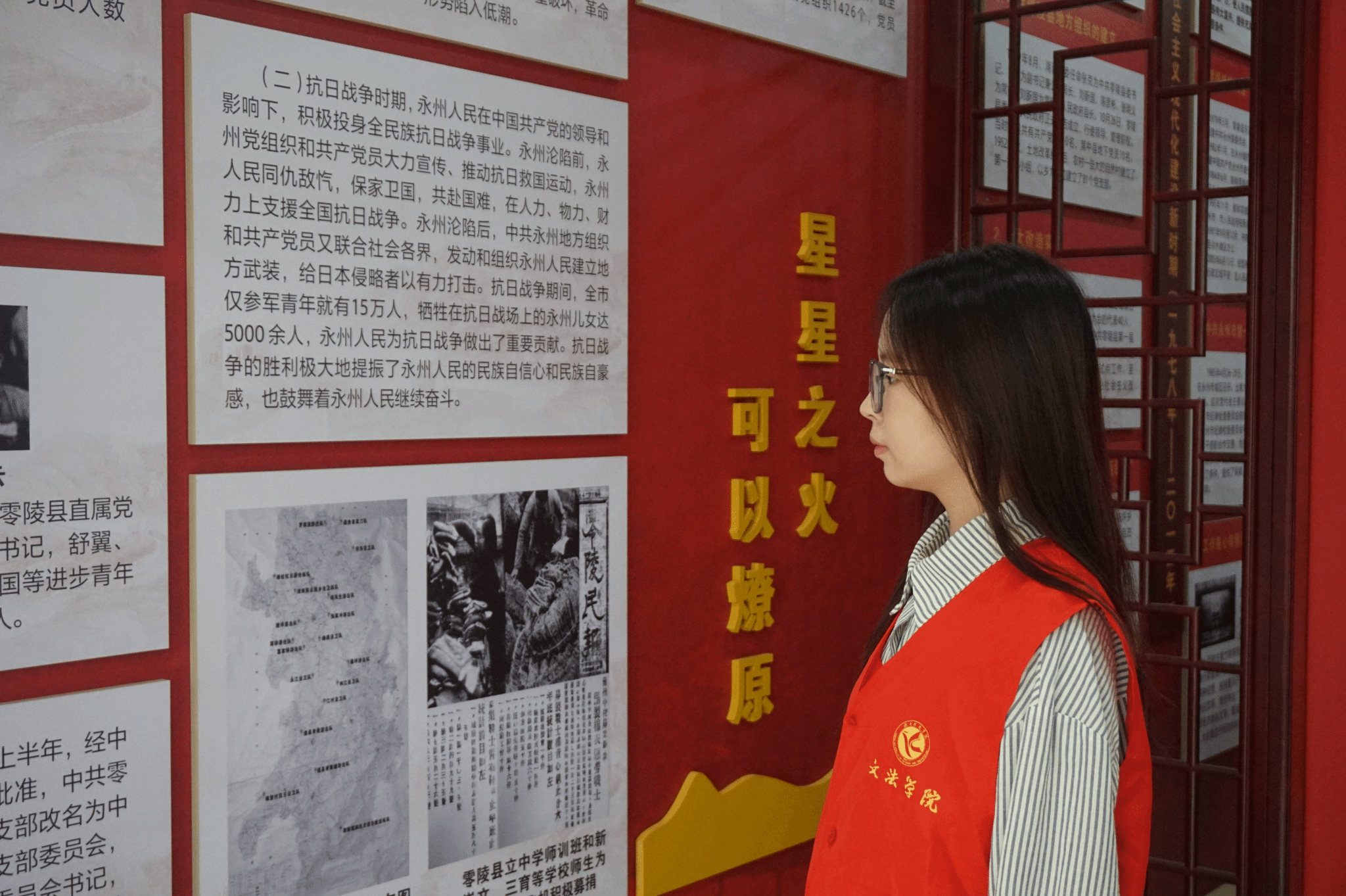 本网讯(通讯员 陈慧琳)为深入推进全民国防教育月活动,强化师生国防观念,9月23日,beat365官网师生代表来到永州市零陵区全民国防教育展厅开展主题实践教育活动。通过“沉浸式参观+榜样事迹分享”等方式上了一堂生动的国防教育思政大课。
