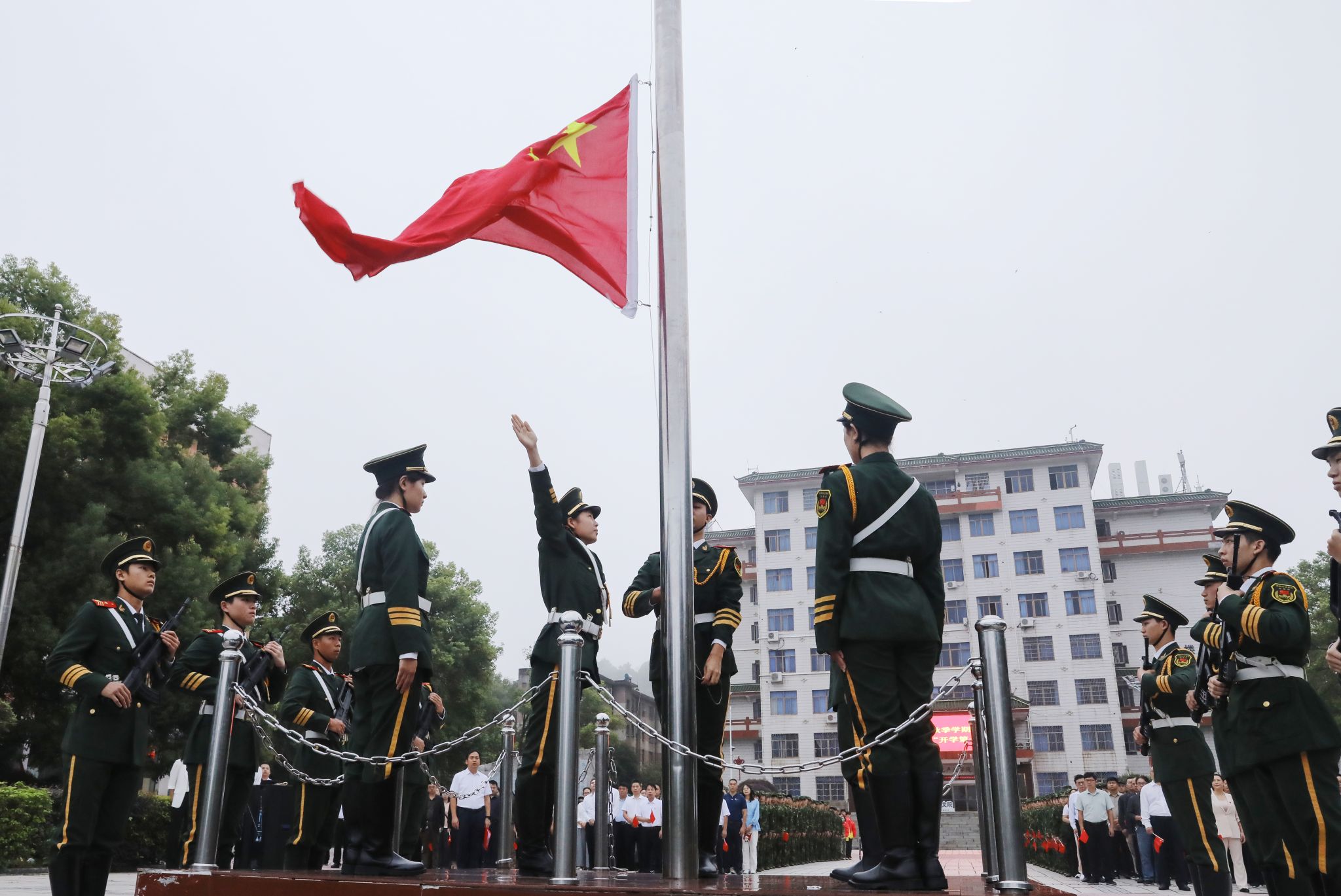 英姿飒爽的国旗护卫队迈着铿锵有力的步伐,护送国旗入场。伴随着雄壮激昂的国歌,鲜艳的五星红旗迎着朝阳冉冉升起。全体师生庄严肃立,向国旗行注目礼,崇高的爱国情怀在每个人心中激荡。