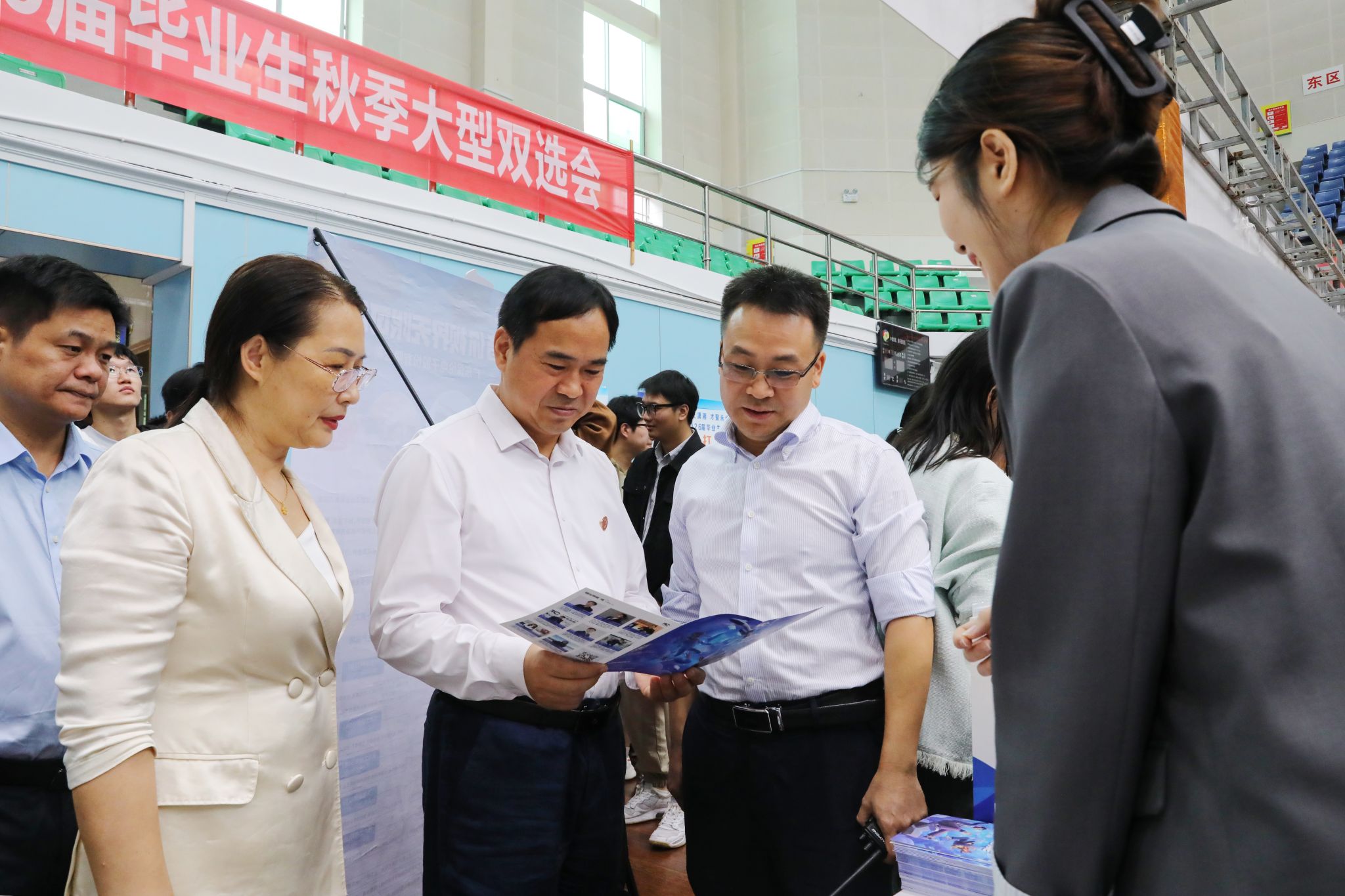 本网讯(记者 彭尧煜 摄影 谢志豪 朱浩然 阮颖)10月15日上午,学校举行2026届毕业生秋季大型双选会。本次双选会旨在为毕业生与用人单位搭建高效、精准的对接平台,助力毕业生顺利就业。校长黄创霞、副校长郑银芳出席双选会,与用人单位及毕业生亲切交流。