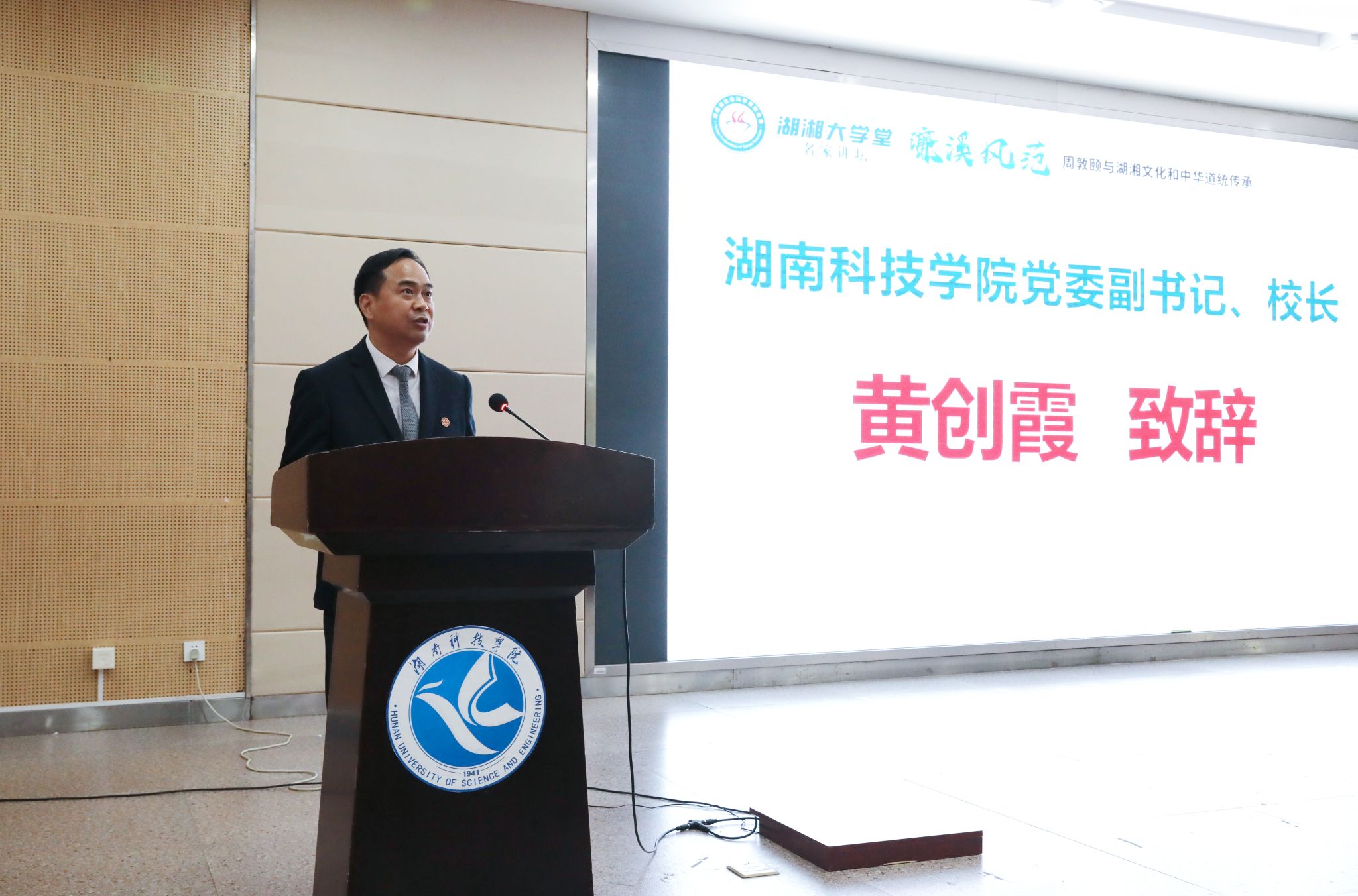 黄创霞在致辞中表示,学校长期致力于理学文化的挖掘与研究,依托“湖南省濂溪学研究基地”等重要平台,先后成功举办了全国周敦颐遗迹遗址地政协协商协作会议、周敦颐理学文化学术研讨会等一系列高水平学术与文化活动。未来,学校将持续加大对周敦颐理学文化研究的支持力度,深入挖掘地方文化资源,积极推动中华优秀传统文化创造性转化与创新性发展。