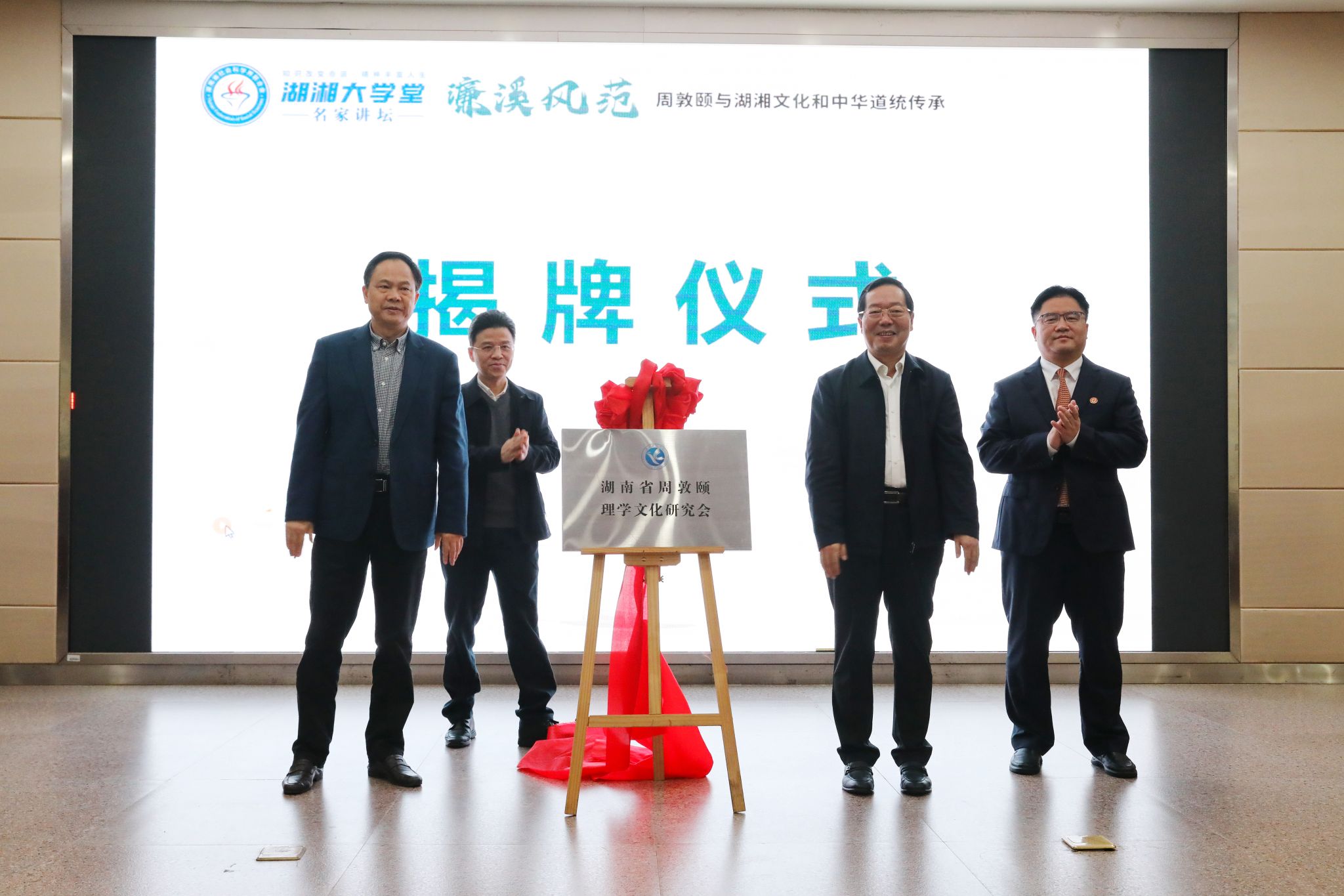 周敦颐是宋明理学的开山鼻祖、湖湘文化的重要源头,其创立的“濂溪理学”上承孔孟之道,下启程朱理学,在中华文明发展史上具有“破暗”的里程碑意义。湖南省周敦颐理学文化研究会的正式揭牌,标志着濂溪学研究迈向系统化、组织化、协同化的新阶段。未来研究会将立足湖南、联动全国、面向世界,整合学术资源,汇聚研究力量,致力于周敦颐思想的深度阐释、遗产保护、文化传播与国际交流,推动文化与旅游深度融合,协同打造具有全国影响力和国际知名度的周敦颐理学文化品牌。