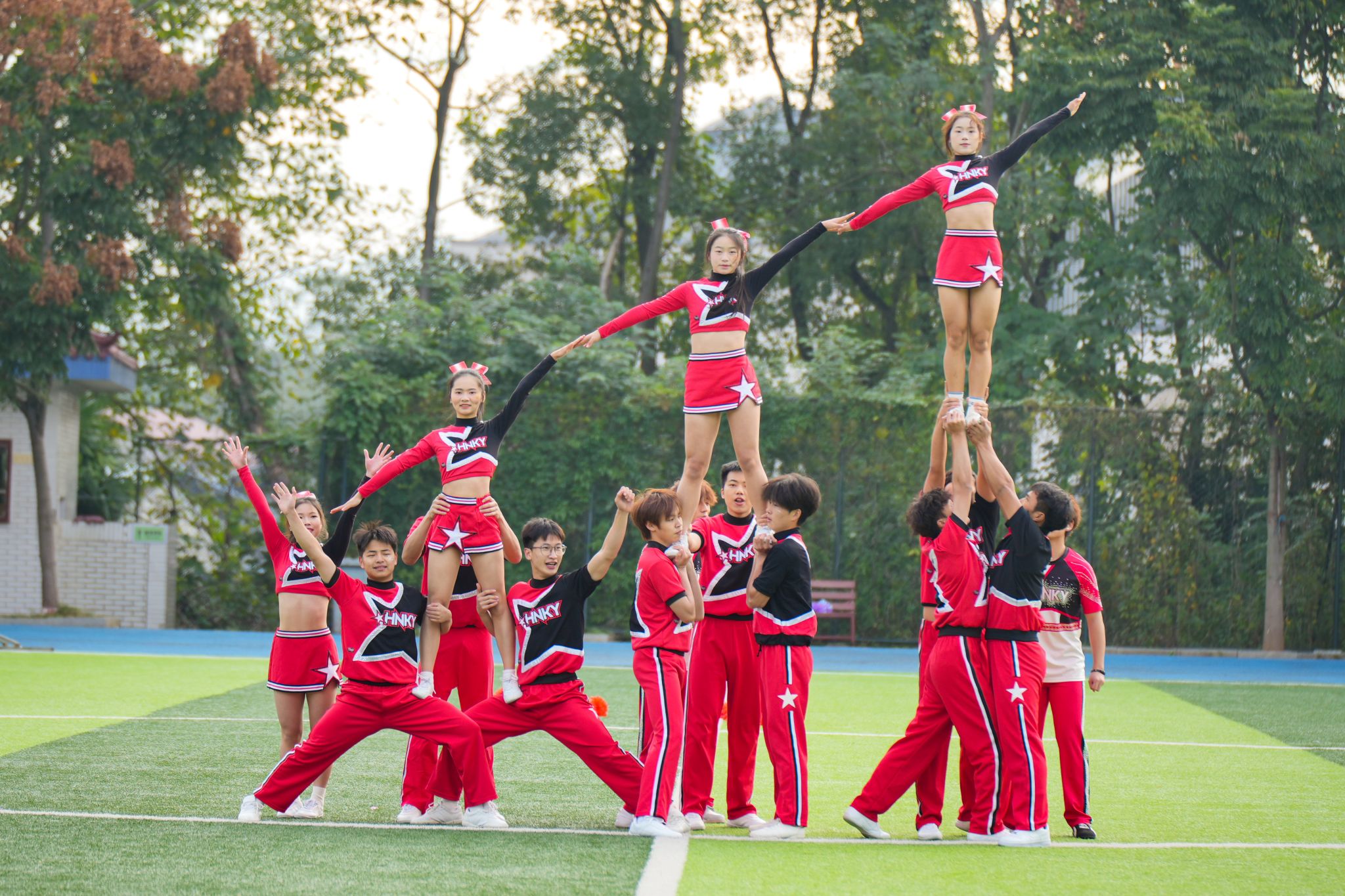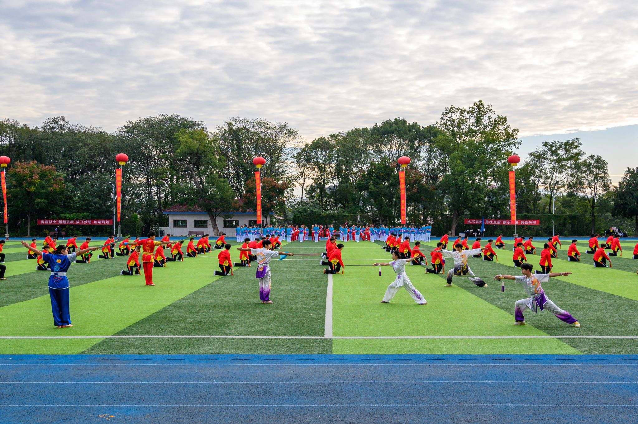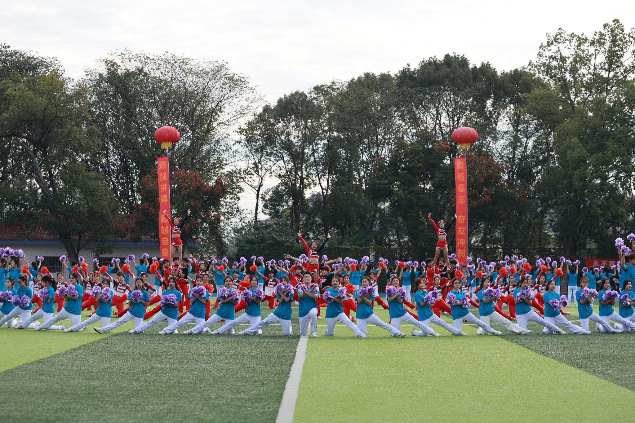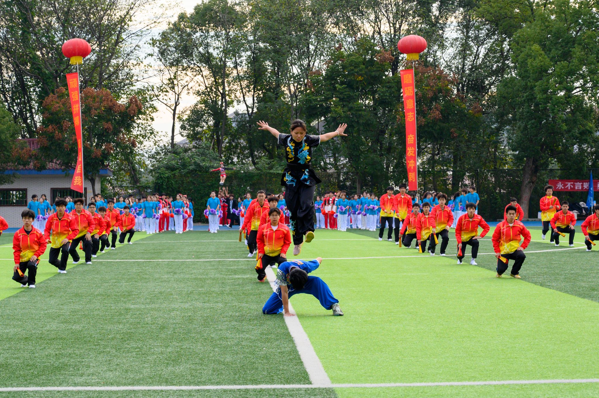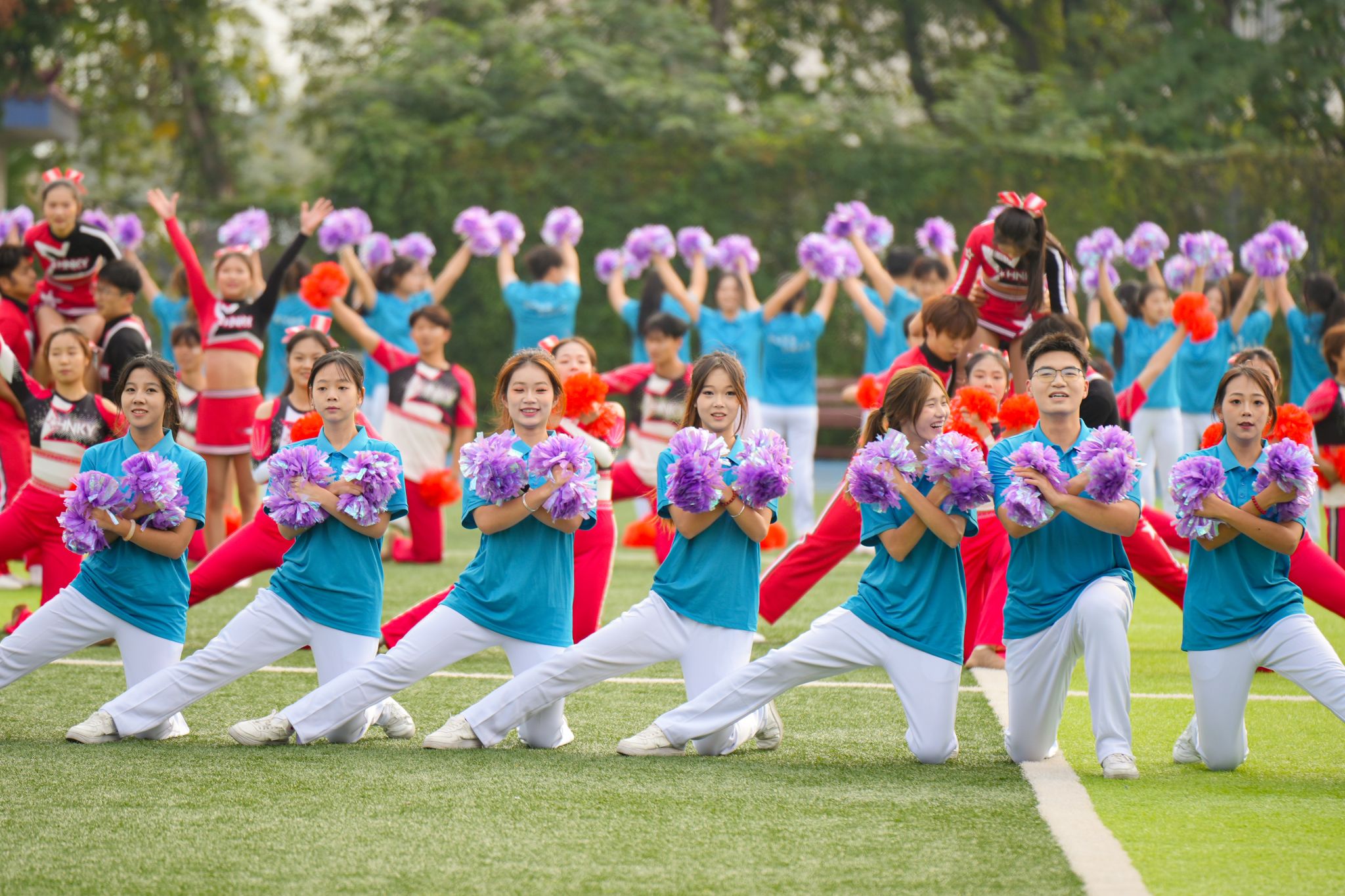 紧随而来的便是各个学院的表演方阵,他们身着特色服装依次亮相,队列整齐、精神抖擞,嘹亮的口号与每个学院的特色结合,向全校师生展现出勇夺佳绩的决心与信念。