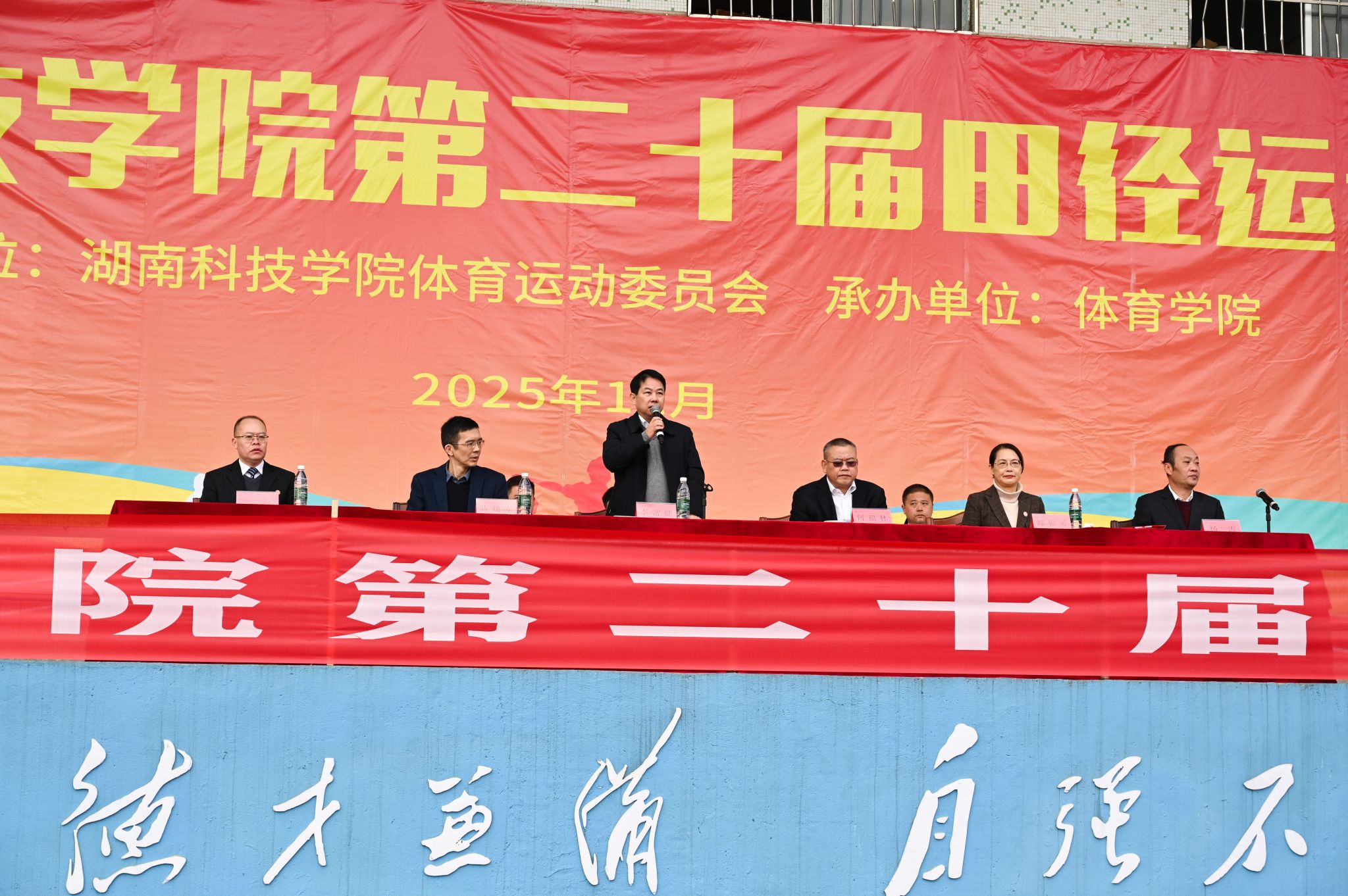 校党委委员、副校长李常健宣布学校第二十届田径运动会正式开幕。