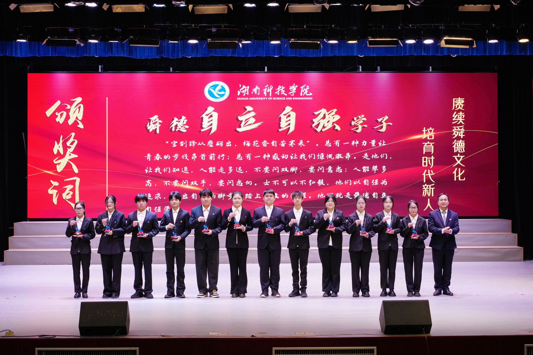 “助人为乐学子”杨叶,以平凡善举,为他人倾尽热忱传递温暖,诠释助人为乐的真谛;“自立自强学子”李科俊,以自强为剑,劈开前路的荆棘,用坚韧步伐踏响青春的强音;“谦恭知礼学子”段婵,将谦恭知礼内化于心、外化于行;“孝老爱亲学子”孙涛,以孝为灯,守护至亲,躬身爱家写担当;“诚实守信学子”张胜蓝,以点滴行动诠释诚实守信,彰显新时代大学生高尚的品格;“无私奉献学子”赵润琨用不求回报的付出,让梦想绽放,让希望绵延……每位“舜德学子”的故事虽不尽相同,却感人至深,催人奋进。