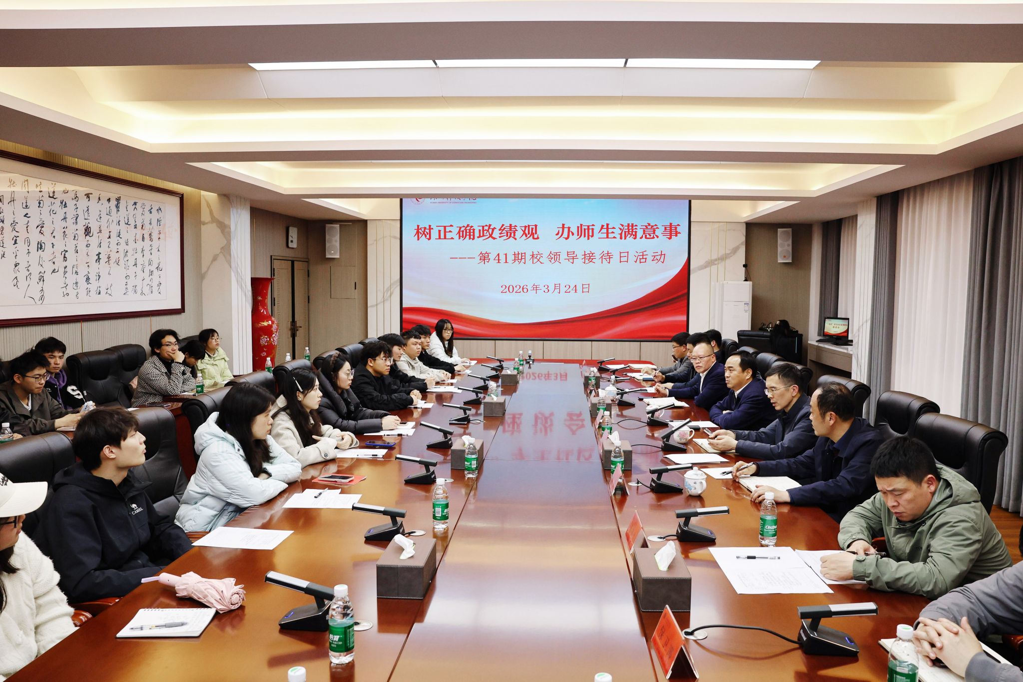 本网讯(通讯员 肖方晴 唐春艳 摄影 朱浩然 何佳 陈雨洁 )为贯彻落实“三全育人”教育理念,深入推进“一站式”学生社区建设,更好服务学生发展,3月23日至24日,学生工作部、党政办公室牵头举办“一站式”学生社区管理服务系列座谈会暨第41期校领导接待日活动,相关校领导及各职能部门负责人与各学生社区代表进行面对面交流。