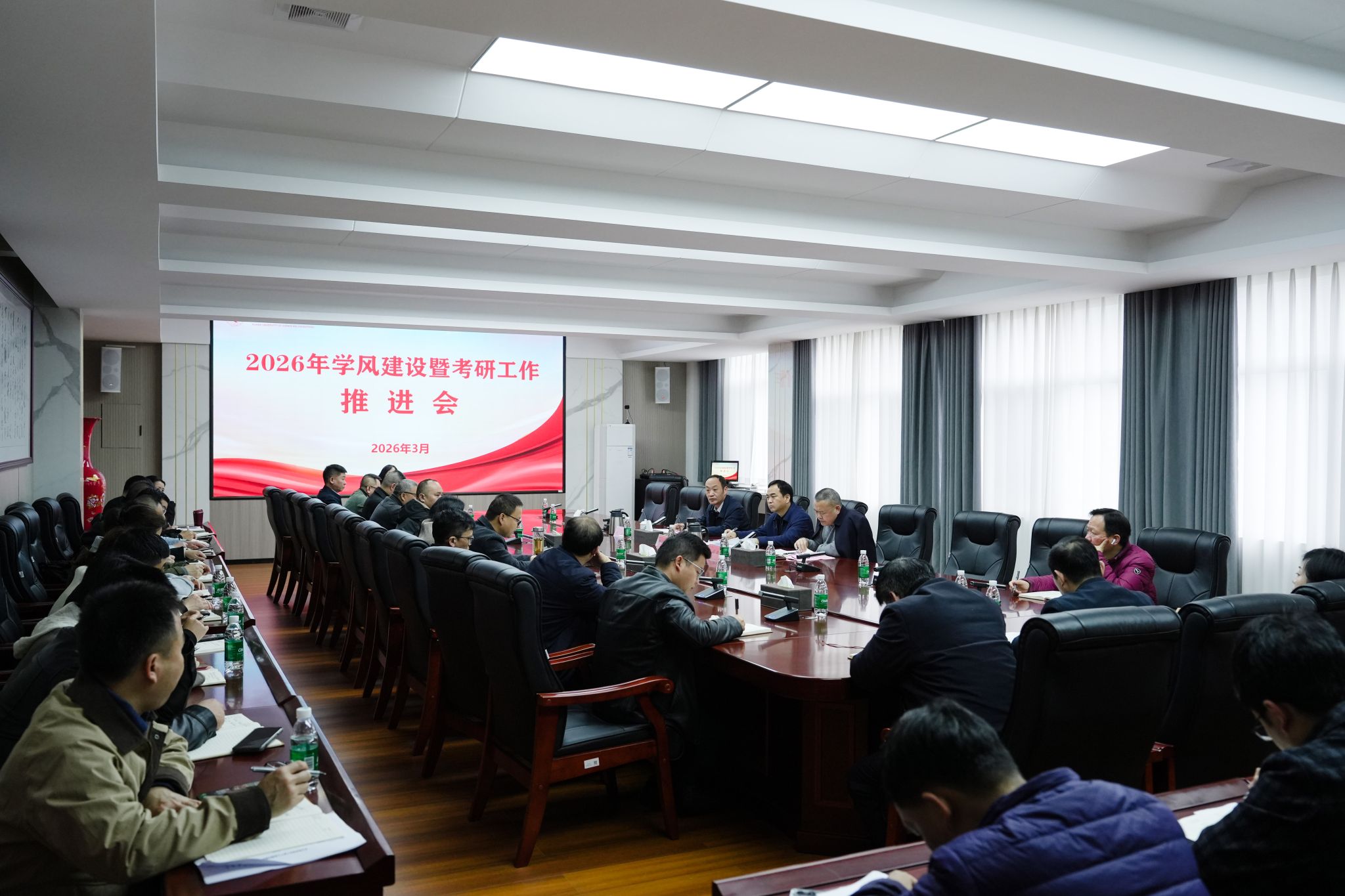 本网讯(通讯员 吕文青)3月25日,beat365官网召开2026年学风建设暨考研工作推进会,党委副书记、校长黄创霞,党委委员、副校长何福林,党委副书记、组织部部长杨涛出席会议。