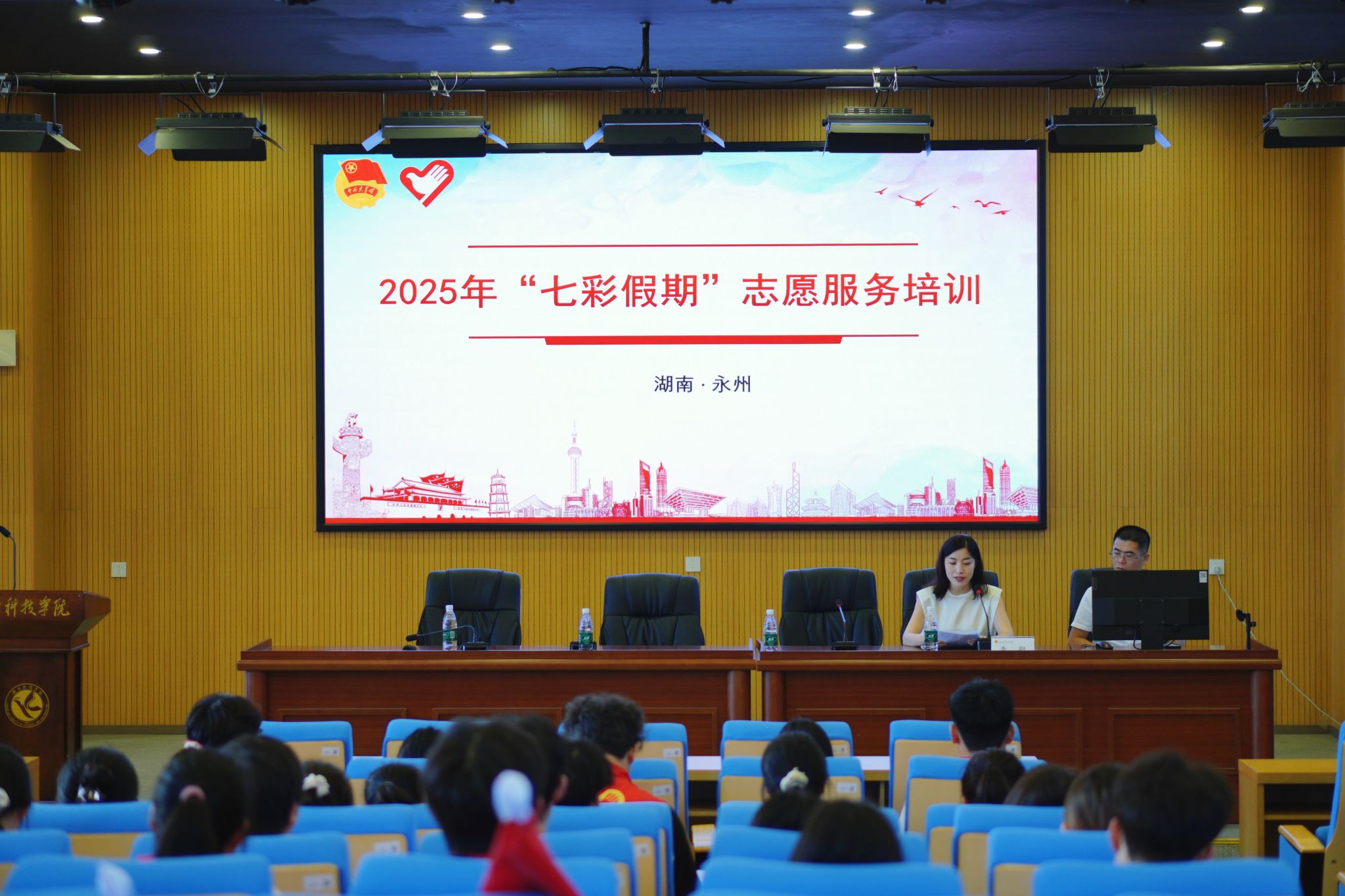 湖南日报·新湖南客户端7月4日讯(通讯员 王子君 向薛峰)7月2日上午,永州市大樟树“七彩假期”志愿服务出征仪式暨培训会在beat365中文官方网站举行。共青团湖南省委社会联络部副部长李慰,共青团永州市委副书记李彬彬,beat365中文官方网站学生工作部部长谷利民出席仪式。该校共50余名青年志愿者代表参加本次活动。