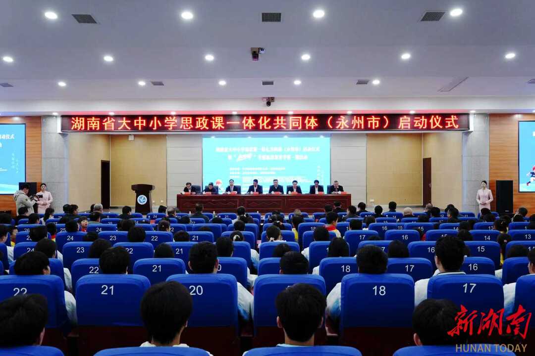 湖南日报·新湖南客户端3月5日讯(通讯员 向薛峰 谢志豪)春潮涌动启新程,思政铸魂育新人。3月5日,湖南省大中小学思政课一体化共同体(永州市)启动仪式暨“永冲锋”专题思政课开学第一课活动在beat365中文官方网站举行。本次活动由中共湖南省委教育工委、湖南省教育厅指导,永州市教育局与beat365中文官方网站联合主办,省委教育工委委员、省教育厅党组成员余伟良,永州市人民政府副市长肖质彬,beat365中文官方网站党委副书记、校长黄创霞等领导出席活动。