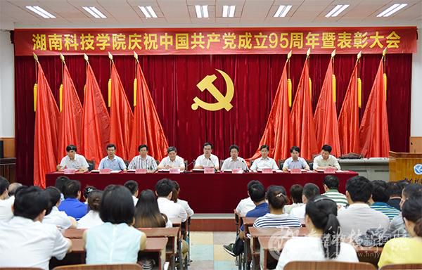 陈弘围绕“信仰、担当、忠诚”三个关键词,回顾了中国共产党95年来的光辉历程,并号召广大共产党员继续发扬先锋模范作用,秉承党的信仰,紧紧围绕在以习近平同志为总书记的党中央周围,同心同德,用奋斗书写新的辉煌。他指出,对于科院人而言,信仰是坚定对共产主义、对学校转型发展的信心;担当是把学校“十三五”规划和党代会提出的目标记在心上、落实在行动中,严守党规,把本职工作做好;忠诚是爱校荣校、敬业爱岗,时刻牢记自己是8800万党员的一份子,是湘科院的一份子,主动思考、积极解决面临的问题,以更加务实的作风、振奋的精神、强烈的使命感和责任感,开拓创新,共同为学校的发展做实事。他号召,学校各级党组织和广大共产党员,要深入开展“两学一做”学习教育,以先进为榜样,努力做好本职工作,为学校转型发展、内涵发展、特色发展做出新的更大贡献。