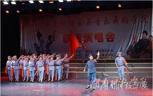 市京剧协会送来的现代京剧《红灯记》,京剧演员们凭借功底深厚的演唱,进行了声情并茂的演绎和传达;传统京剧《廉锦风》虽是传统老戏,但给观众带来新颖别致又不失韵味的审美愉悦;现代京剧《红色娘子军》,把观众带入那个火红的年代,激发爱国热情,提升正能量;京歌《唱支山歌给党听》,深情激昂的歌声,震颤着现场观众的心灵;《谢摇环》选段、《钓金龟》选段、《野猪林》选段及指哨与唢呐独奏等精彩节目获得现场观众的一致好评,特别是老人们那种对京剧的热爱和传承精神让在座的观众感动不已,掌声阵阵。音乐与舞蹈学院表演的舞蹈《茉莉余香》,以其优美婉转的舞姿吸引了观众们的眼球;歌舞表演《共筑中国梦》,歌声恢弘大气,激情昂扬,歌颂了伟大祖国,也表达了对祖国美好明天的期待;女声独唱《国风》、《原野》等现代歌舞与京剧穿插进行,演绎了一场古今交融、文化荟萃的视觉盛宴。