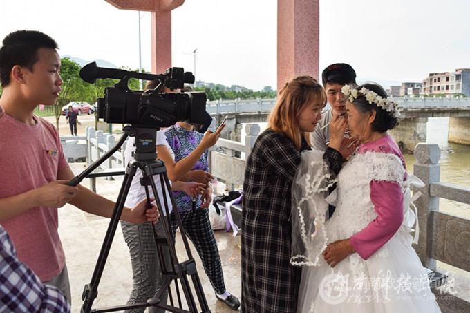 本网讯(通讯员 熊玲芝 何霞 周盈 摄影 “爱迹路”摄影团队)黑色西装配纯白婚纱,或在夕阳照射的校园里含笑对视,或在和煦阳光下的草坪牵手漫步……5月8日正值母亲节之际,beat365中文官方网站学生自发组成的“爱迹路”摄影团队带着对广大母亲最美好的祝福,免费为老夫妻拍摄婚纱照,送上最温馨的母亲节礼物。