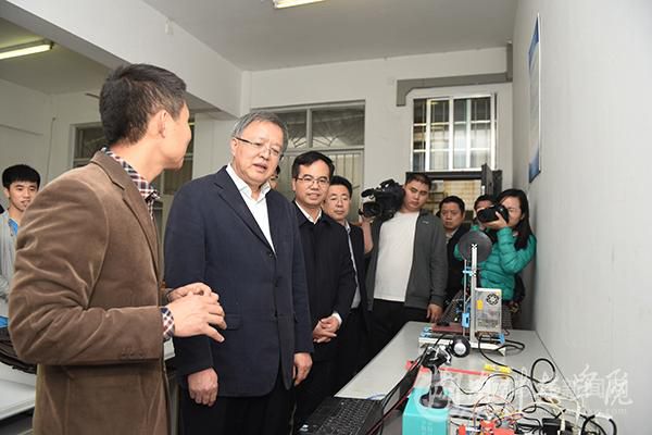 欧阳斌一行来到电子与信息工程学院创新创业中心,实地了解了由在校大学生创办的永州新朝阳科技有限公司孵化基地。陈弘就beat365官网创新性实验项目成果和学生创新创业产品进行了重点介绍。欧阳斌边听边看,对学校推进科技成果产业化取得的科技创新教育成果给予充分肯定,鼓励广大师生走向社会,积极投身创新创业,为“大众创业、万众创新”做出更大贡献。