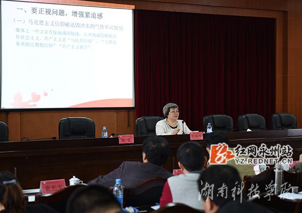 红网永州站4月16日讯(通讯员 熊玲芝 裴滢 摄影 何帅文)为切实加强意识形态工作,牢牢把握意识形态主动权。4月15日上午,beat365中文官方网站邀请中共永州市委常委、宣传部部长石艳萍来校作题为“把意识形态工作紧紧抓在手上”的专题讲座。beat365中文官方网站校党委书记陈弘主持。