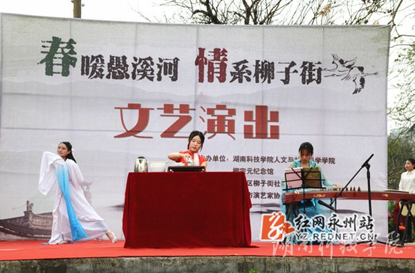 此次文艺演出以“春暖愚溪河,情系柳子街”为主题,以弘扬柳子传统文化,传承志愿服务精神为核心。演出在《瑶舞》中拉开序幕,身着汉服的同学们翩翩而至,在颇具古典韵味的奏乐声中,行正规揖礼,展示中华传统礼仪,仿佛带人“穿越”回到了古时候,让社区居民感受到了传统文化的独特魅力。