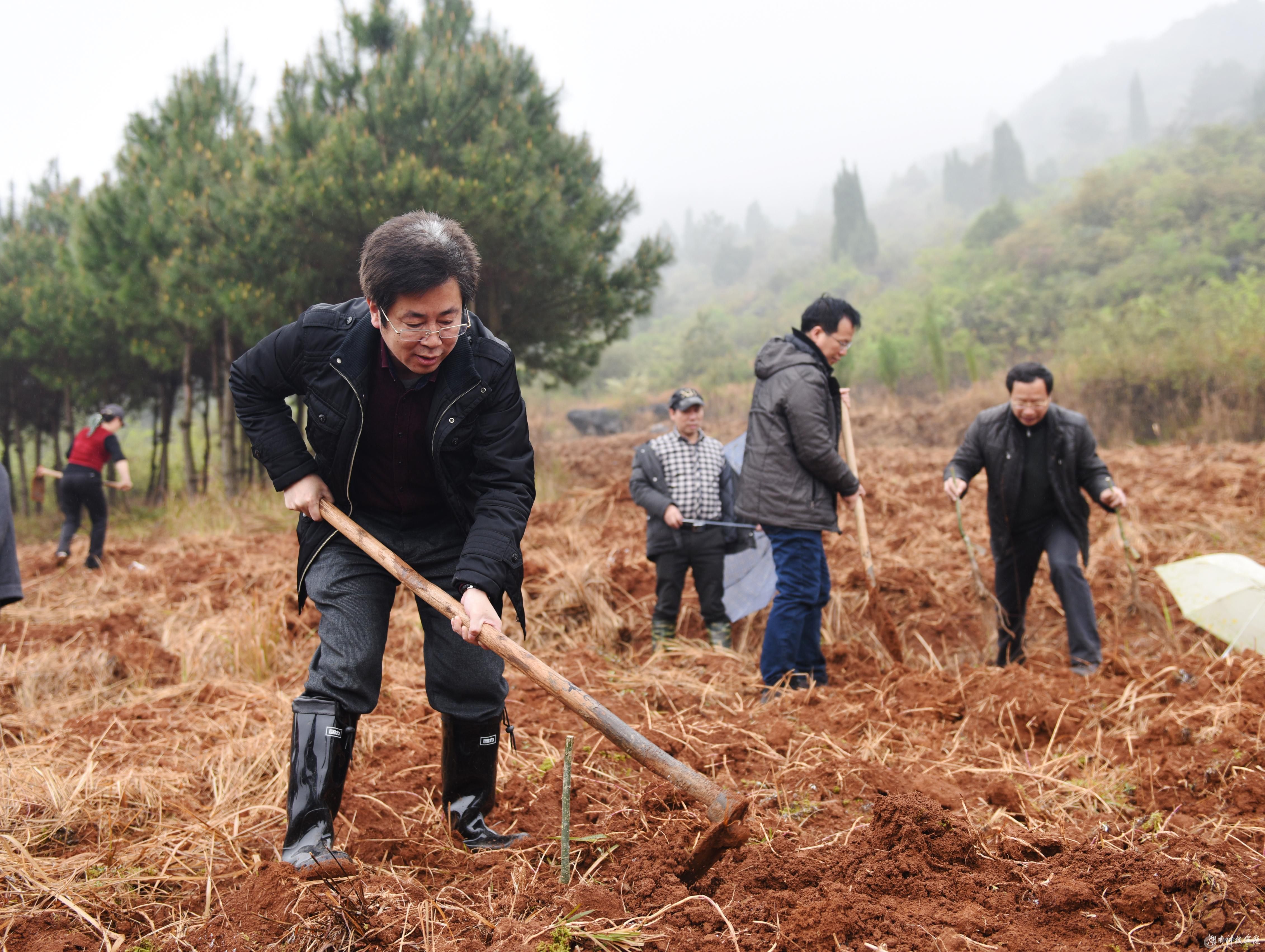 本网讯 (通讯员 周平尚) 助栽致富林,兴业促脱贫。3月16日,新田县龙泉镇潮水铺村细雨蒙蒙,beat365中文官方网站校党委书记陈弘、校长曾宝成等校领导和40余名中层干部来到该村开山种树,发展金槐产业,为缺乏劳动力的贫困户种植金槐500余株,为当地金槐产业再添一片新绿。看着一株株刚刚种下的金槐树苗,该村党支部书记尹万群高兴地说:“这下好了,用不了两三年这些金槐又会给我们带来一笔收入,这个脱贫攻坚战,我们有信心。”