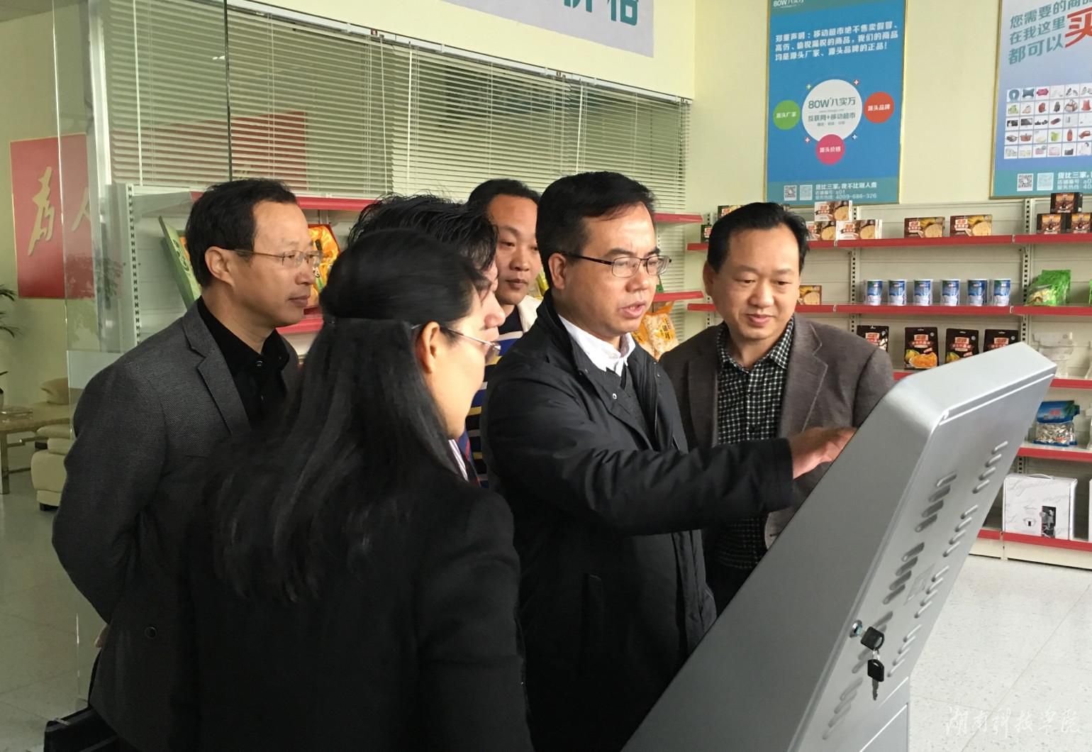 考察组参观了位于零陵区创新创业园的前海八实万(永州)互联网有限公司永州基地,并听取了该基地总经理罗利民的介绍。双方就“互联网+移动超市”的商品展示、仓储配送、创客培训、门店管理等展开了深入交流。