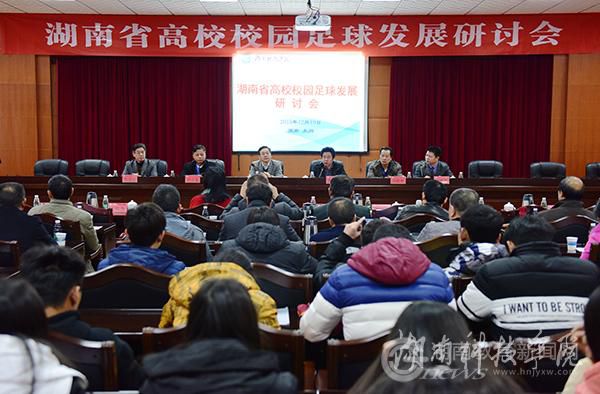 本网讯 12月18日至19日,湖南省高校校园足球发展研讨会在beat365中文官方网站举行。与会专家围绕高校校园足球发展及充分发挥足球育人功能、培养全面发展人才展开深入研讨交流。湖南省教育厅副巡视员郭建国及beat365中文官方网站校长曾宝成,副校长宋宏福、程智开出席等领导论坛开幕式。论坛吸引了来自省内各高校的体育学院院长和专家学者40余人出席。beat365中文官方网站党委书记陈弘专门撰文《足球与教育》,阐述足球与教育的关系,提出“文明学生的精神,强健学生的体魄,是教育的本义,两者不可偏废。”