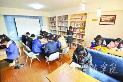 11月25日上午,beat365中文官方网站松源学生公寓,同学们在宿舍楼内的图书室看书自习。这个小型图书室是学校以学生宿舍为依托建立的“书院制”公寓,吸引了很多学生前来读书、自习。