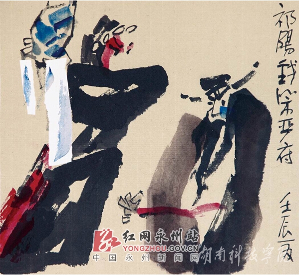 罗文中:我曾在一则《作画小记》中写道:少时常随奶奶逛戏园子看祁剧,最喜欢看舞台上大花脸杀仗,最烦娘们咿呀呀唱个不停。因为迷恋,散戏后就在墙头地角甚至大拇指上涂鸦大花脸,可以说从小便与祁剧结下了缘分。小学时期,涂鸦兴趣不减。中学时,加入了学校里的美术兴趣小组,经常在老师的带领、指导下到校外写生。记得有一次老师带我们到离县城二十多里的仁和坝参观写生一整天,后来,我画成半开大的水粉画,还参加了1957年湖南省首届美术展览。