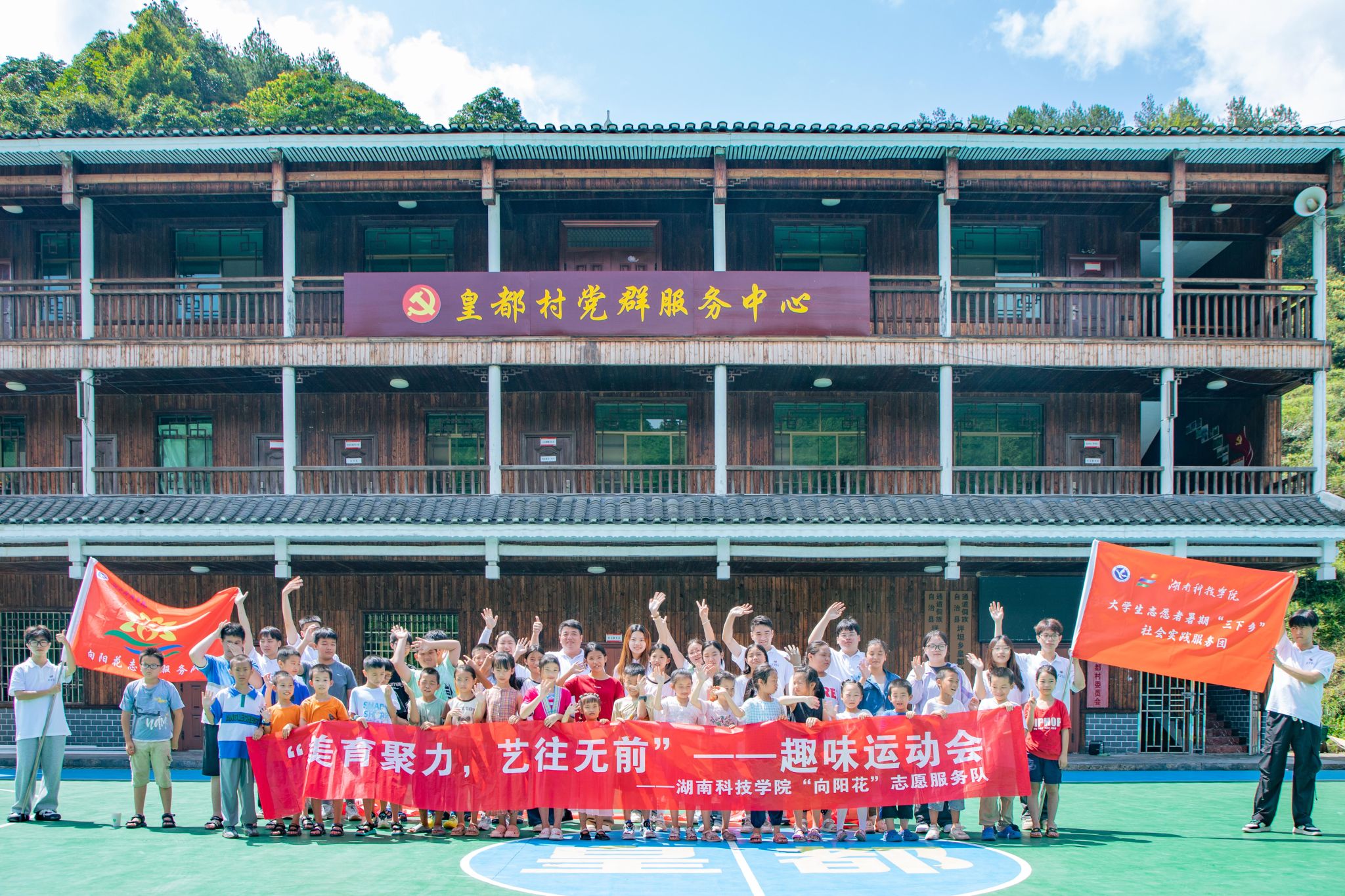 本网讯(通讯员 陶鑫怡 王志鹏)7月14日,美术与艺术设计学院“向阳花”志愿服务队的大学生们赴湖南省怀化市通道侗族自治县皇都村开展湖南省“芙蓉学子·乡村振兴”公益项目暨暑期“三下乡”社会实践活动,携手侗族小朋友开展了一场颇具活力和激情的趣味运动会。
