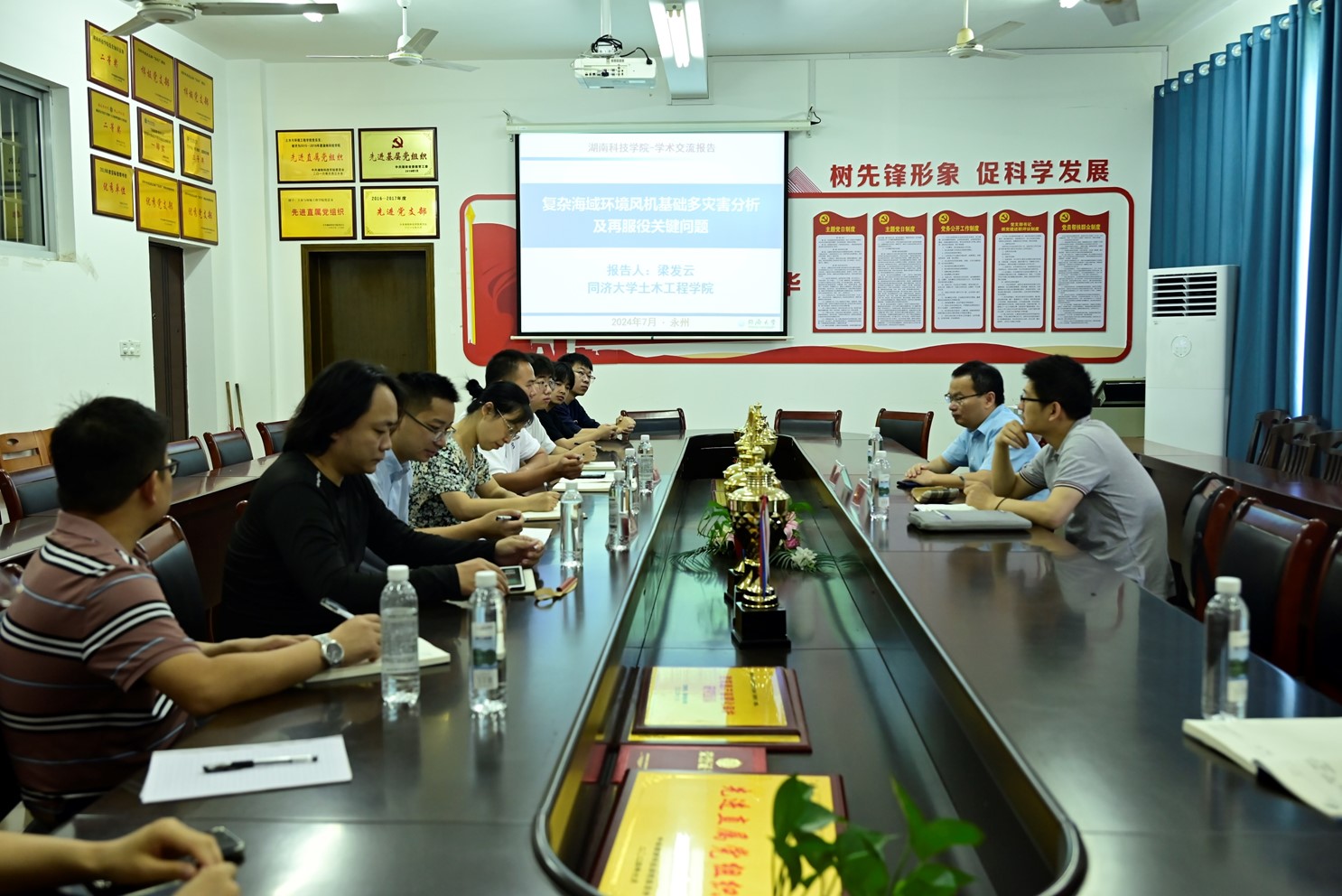 本网讯(通讯员 王晶晶 胡扬阳)7月18日至20日,应砖石质文物智慧化保护利用技术湖南省重点实验室和土木与环境工程学院邀请,岩土及地下工程教育部重点实验室副主任、同济大学梁发云教授,王琛博士一行来校进行学术交流,并举办“复杂海域环境风机基础多灾害分析及再服役关键问题”的专题讲座,土木与环境工程学院党总支书记何永红、副院长孙明、副院长胡佳星以及学院部分教师参加讲座。