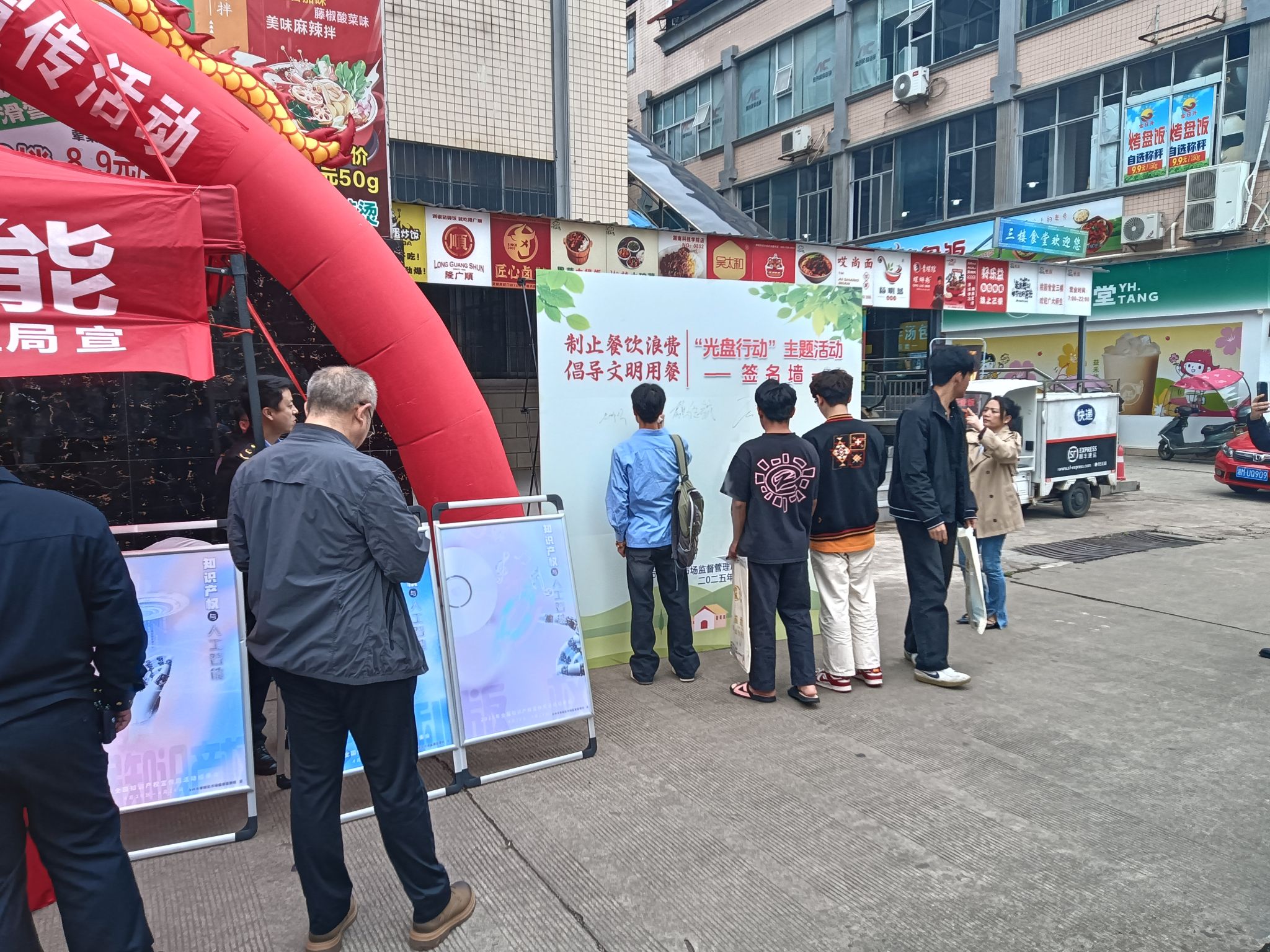 活动现场,工作人员通过悬挂横幅、发放宣传手册、举办专题讲座等形式,以守护粮食安全为切入点,向广大师生倡导拒绝浪费、文明用餐的美德,将节粮意识植入师生心中的同时引导师生养成科学用粮、营养健康的消费理念,路过的师生踊跃在“光盘行动”签名墙上签名。