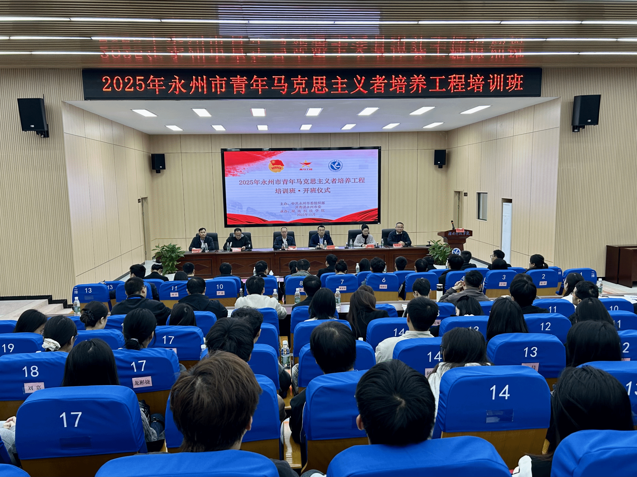 本网讯(通讯员 曹湖云 蒋滢洁)11月4日,由中共永州市委组织部、团市委联合主办的2025年永州市青年马克思主义者培养工程培训班在beat365官网开班。校党委委员、副校长何海,团市委副书记唐泽彦、李彬彬等出席开班仪式。来自全市各乡镇(街道)及卫健、税务、国资等系统的53名团干部齐聚一堂,开启集中学习之旅。