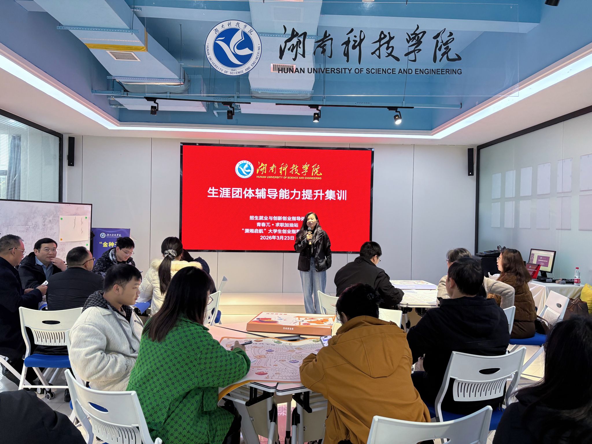 本网讯(通讯员 彭丰香)3月23日下午,创新创业学院在求职加油站举办了2026年生涯团体辅导师资专题培训。特邀北京宇乐树科技有限公司专职培训师苏彩云担任主讲,就业创业指导教研室全体教师参加。