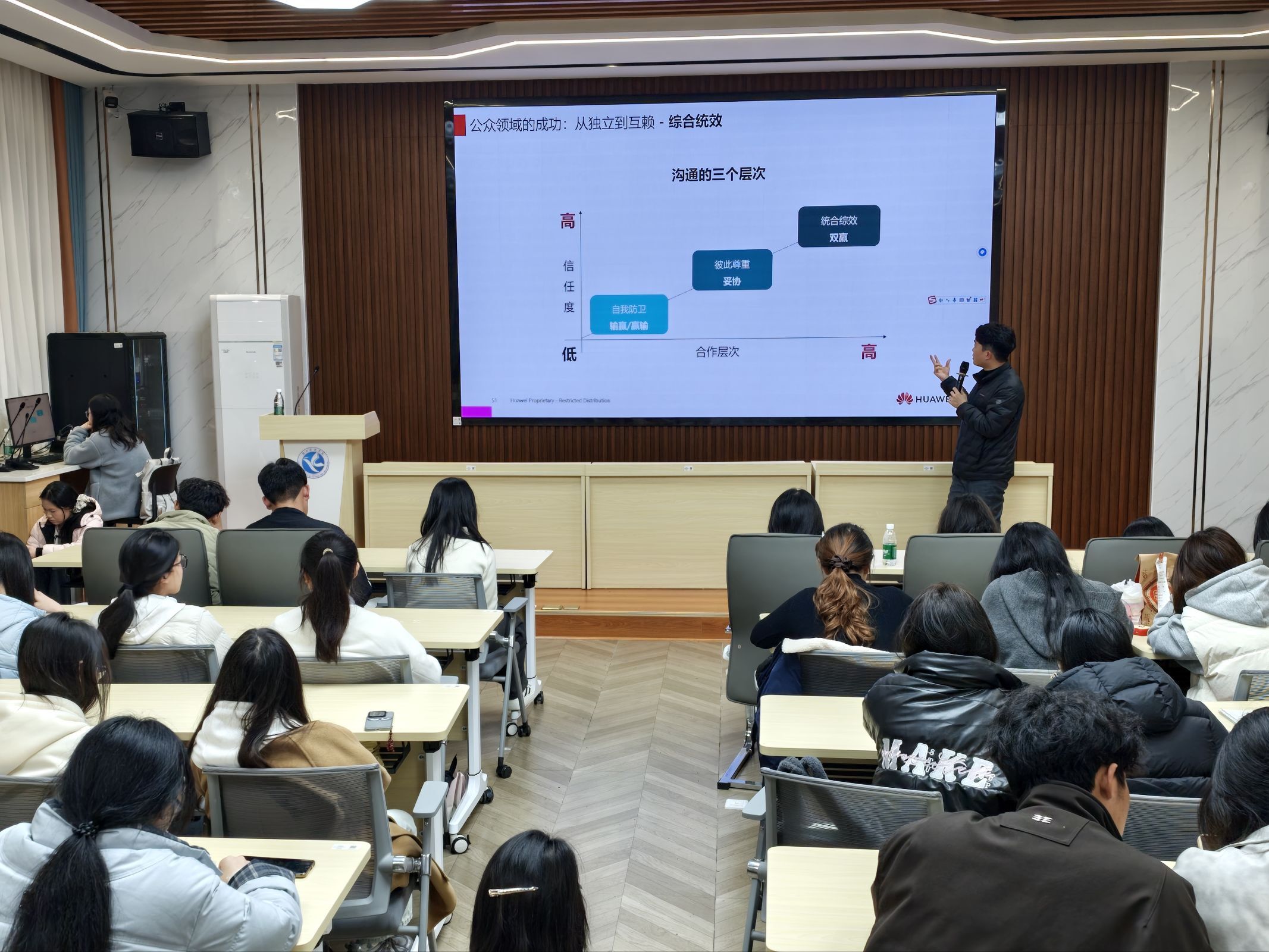 本网讯(通讯员 陈烨 彭丰香)3月27日晚,2026年华为校园公开课在明理楼101举行。本次活动由招生就业与创新创业指导处主办,大学生就业创业促进协会承办,特邀华为终端BG湖南终端业务部永州区域地市主官温国新担任主讲嘉宾,吸引200余名学生到场参与。