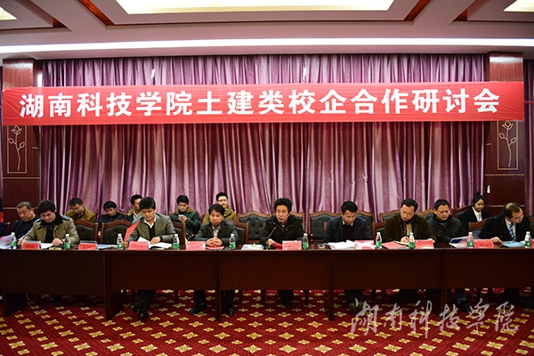 本网讯(通讯员 廖群峰)12月12日下午,校长曾宝成,副校长李常健与来自湖南建筑工程集团东北工程局、湖南省益阳公路桥梁建设有限责任公司等十七家公司代表齐聚一堂,就推进土建类校企合作展开热烈探讨。永州市住房与城乡规划建设局党组书记、局长彭晓东出席。会议由土木与环境工程学院党总支书记张俭民主持。
