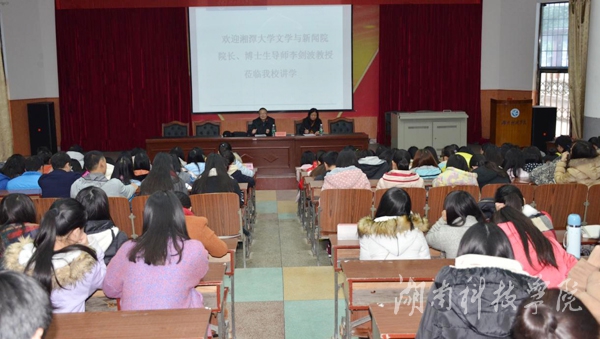 本网讯(通讯员 向赛男 陈壹丹 李雯静)11月27日下午,湘潭大学文学与新闻学院院长、博士生导师李剑波教授应邀来beat365官网讲学,在明德楼报告厅为人文与社会科学学院师生作题为“清代诗坛对宋诗范式的重建与创新”深刻而精彩的讲座。讲座由该院翟满桂教授主持。