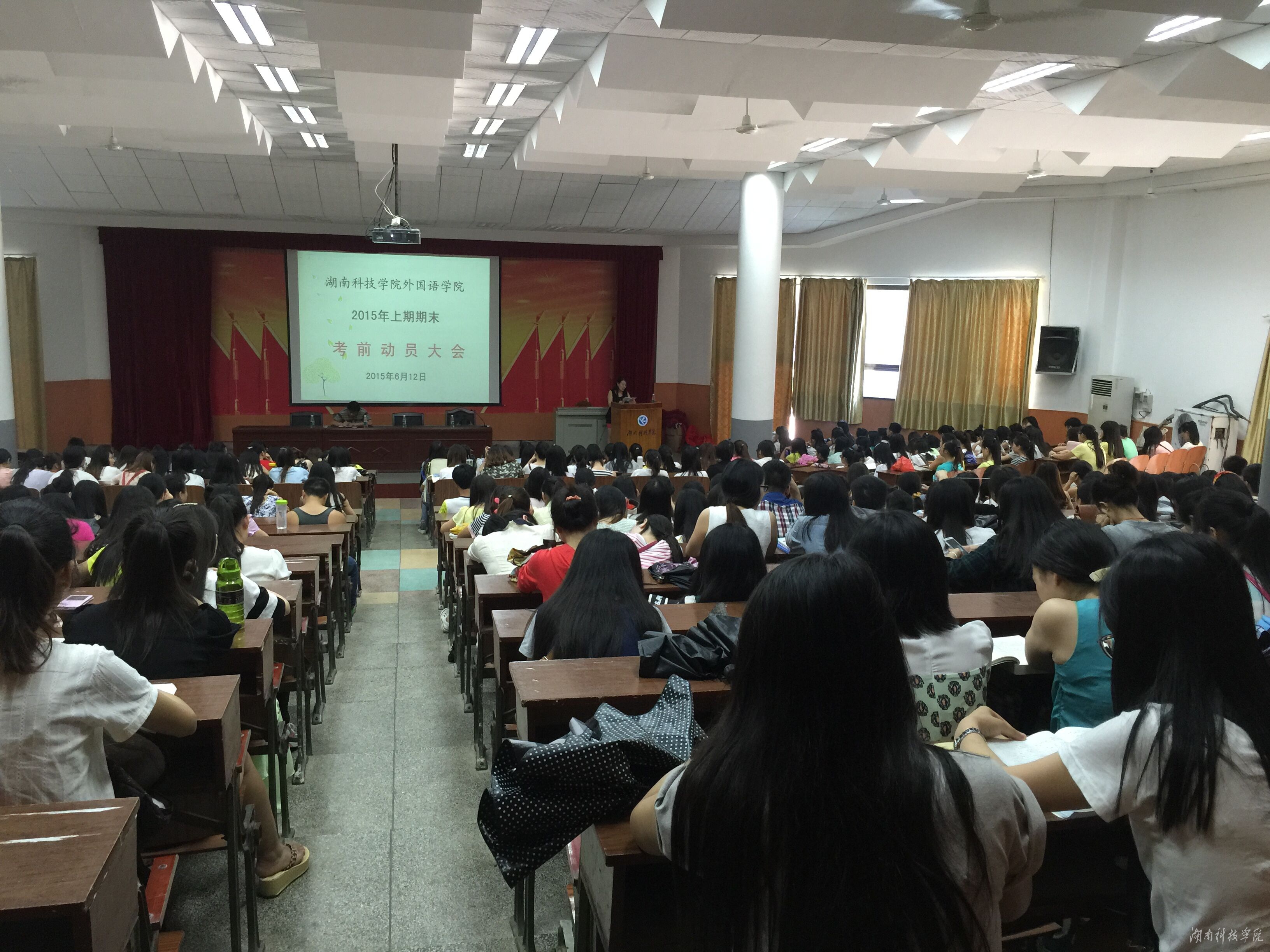 本网讯(通讯员 罗晶 卢秀银)为推动2015年上期期末考试工作顺利开展,促进同学们对期末考试的重视程度,6月12日下午,外国语学院在明德楼报告厅召开考前动员会。