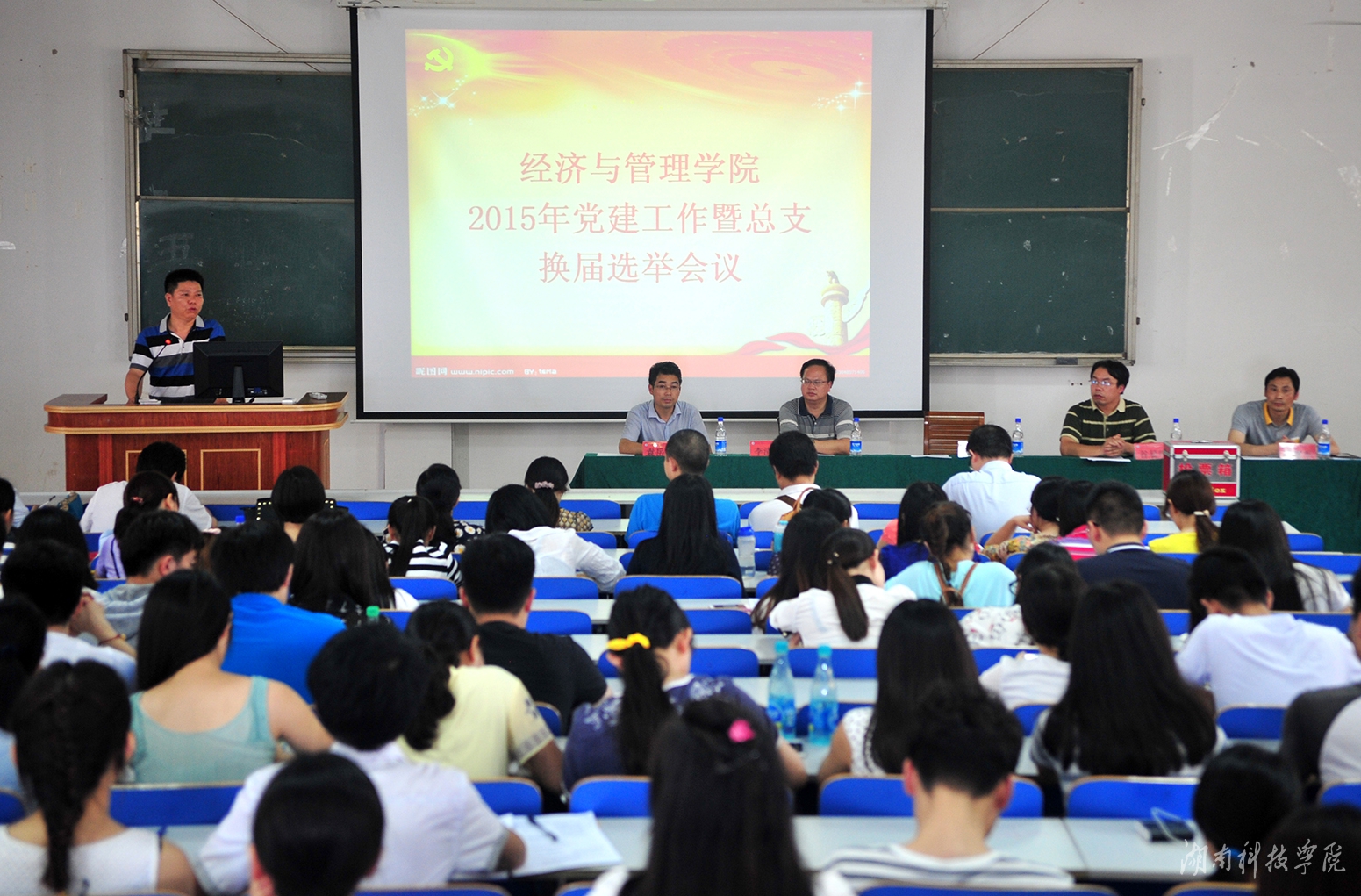 本网讯(记者 石玉婵 罗磊)5月19日下午,经济与管理学院2015年党建工作暨党总支换届选举会在立信楼召开。会议总结回顾了去年的党建工作,安排部署了今年的工作,选举产生谷显明、李清泉、袁岳驷、杨建军、李佳珂为新一届党总支委员。