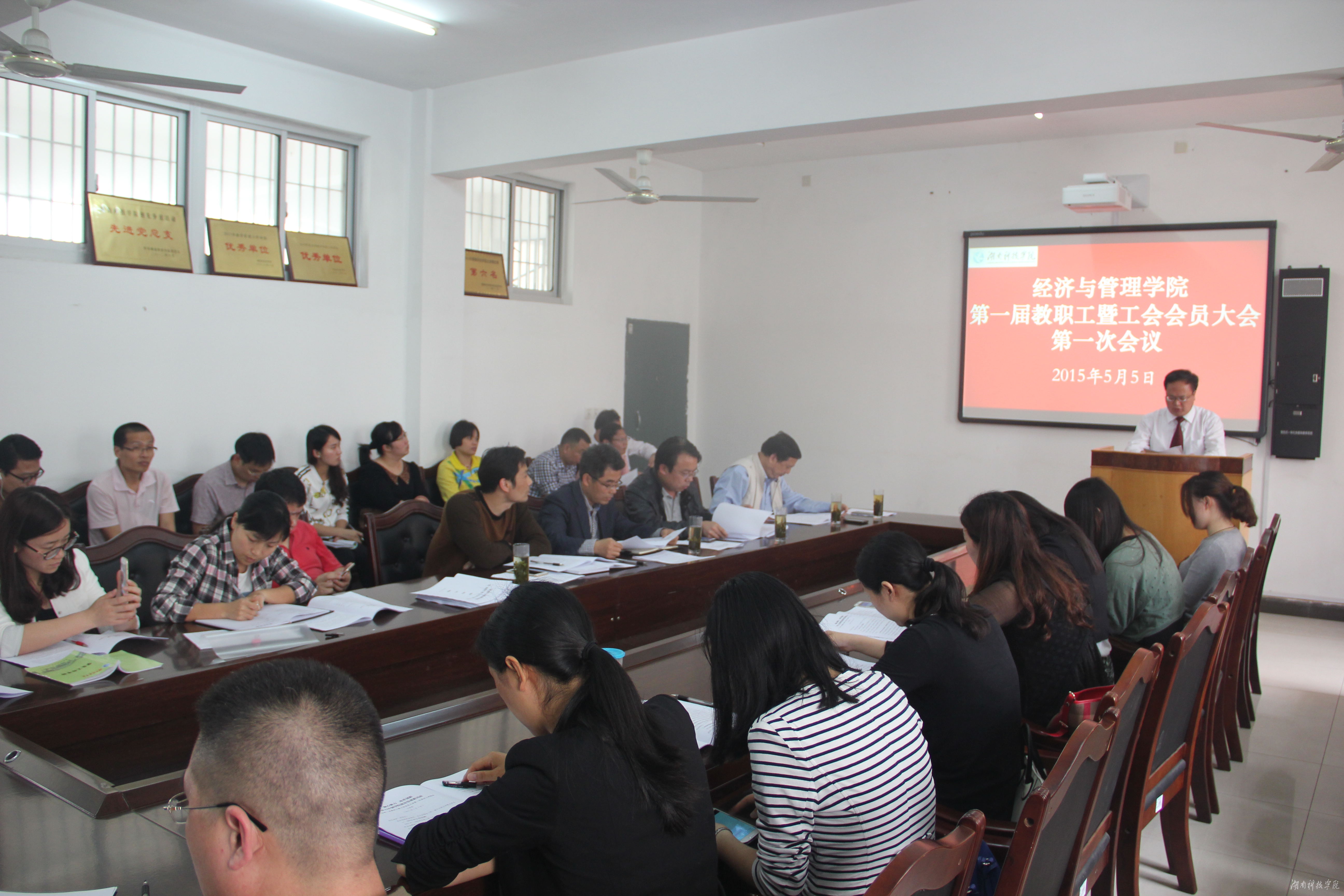 本网讯(通讯员 王婧 胡勇胜)5月5日下午,经济与管理学院第一届全体教职工暨工会会员大会第一次会议在立信楼会议室举行。会议审议并通过了学院工作报告、院分工会工作报告和院财务工作报告,选举产生谷显明为新一届院分工会主席,邹小阳为组宣委员,李晓红为女工委员。大家就学科专业建设、师资队伍建设、教学管理及改革、实验室建设、学风建设及学生管理、办学经费等问题进行了讨论。