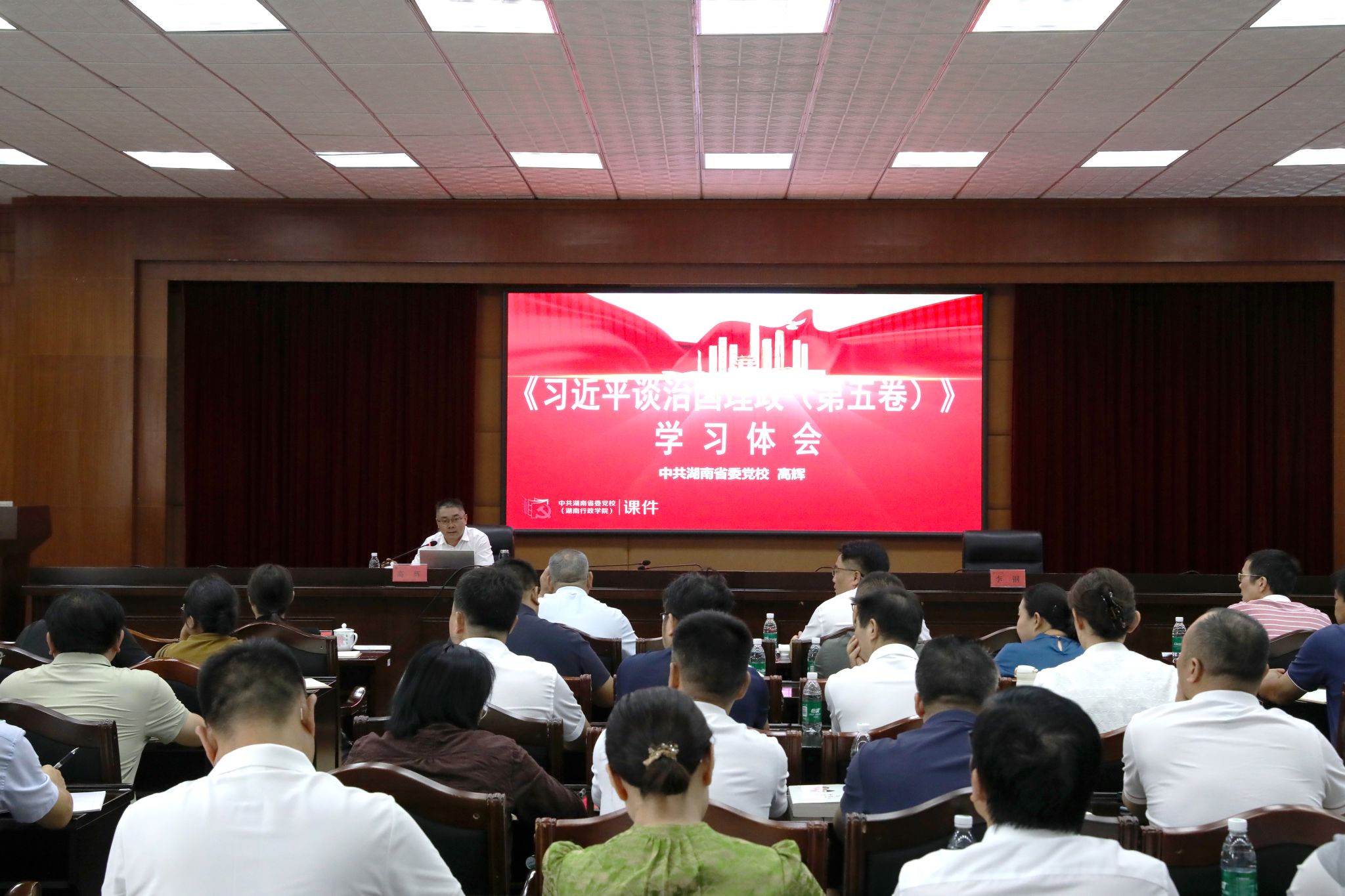 会议以深入学习《习近平谈治国理政》第五卷为主题,特邀省委党校图书馆馆长高辉作专题辅导报告。高辉深入浅出地从深入学习领会《习近平谈治国理政》第五卷的重要价值、核心要义、贯通理解习近平新时代中国特色社会主义思想的世界观方法论等三个方面,对《习近平谈治国理政》第五卷进行了系统梳理和深入阐释。